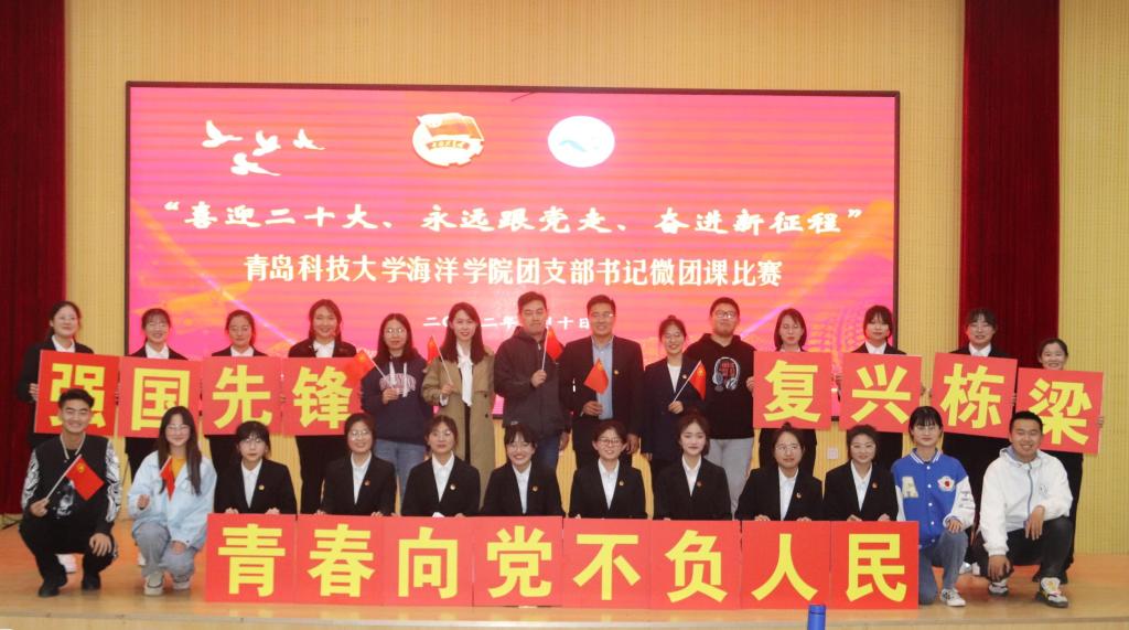 为认真学习贯彻习近平总书记在庆祝中国共产主义青年团成立100周年大会上的重要讲话精神,庆祝中国共产主义青年团成立100周年,迎接党的二十大胜利召开,5月10日晚,万象城allwincity官网海洋学院举办“喜迎二十大、永远跟党走、奋进新征程”主题微团课比赛。