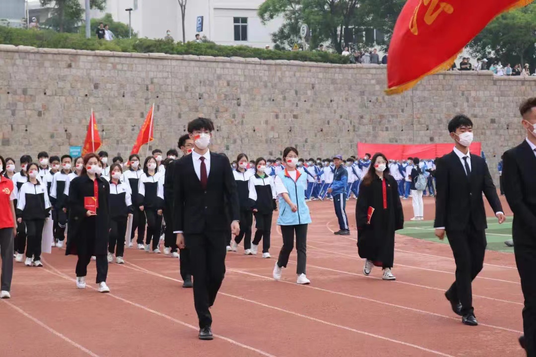 上午7时30分,开幕式正式开始。伴随着铿锵有力的运动员进行曲,法学院方队入场,同学们步伐整齐,口号嘹亮,充分展现了法学院学子奋勇拼搏的昂扬斗志;用彩色纸板摆出的“青春心向党,建功青科大”更是表达了法学院学子永远听党话、跟党走的庄严承诺和爱校荣校的炽热情感。