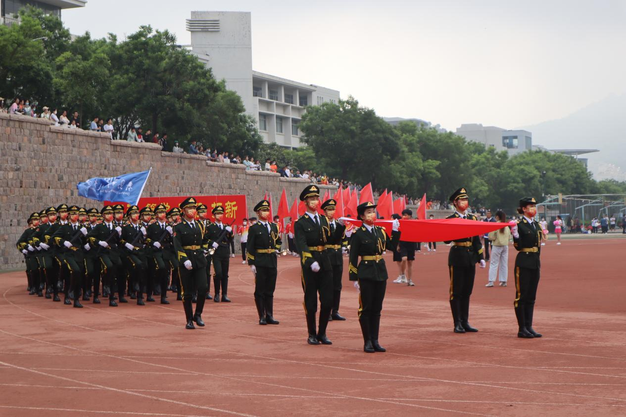 开幕式进行第二项,升国旗、奏国歌,学校国旗护卫队护送国旗到升旗台,全体师生肃立注目。升旗仪式完毕,校党委常委、副校长李勇致开幕词,预祝运动会成功举办,激励同学热爱体育,增强体质。