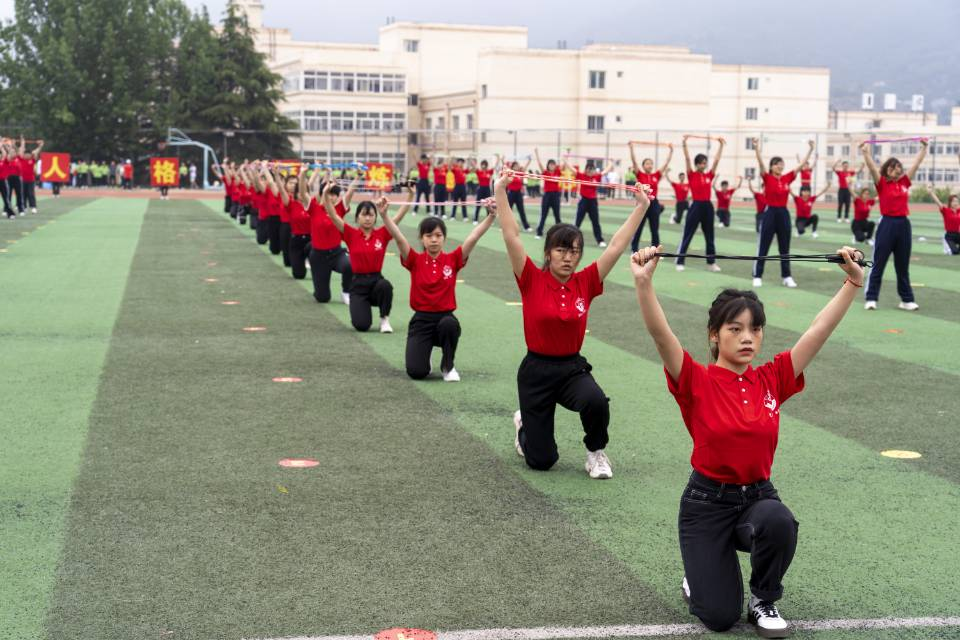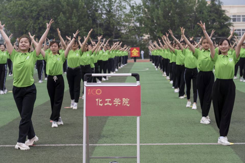 各学院方队有序离场,排舞联赛和跳绳比赛的运动员们早已准备就绪。化工学院排舞队员们随着旋律舞动,步伐轻盈、舞姿优美,跳绳运动员们整齐甩动手中的跳绳,跟着音乐节拍跳动,将化工学子青春活力、自信大方的风采展现的淋漓尽致。