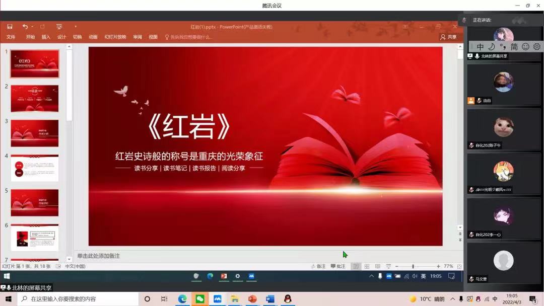 埋头苦干砥砺前行,坚定信念迎接党的二十大。5月4日,自化202团支部以线上交流的方式开展“青春心向党,百年绽芳华”主题团日活动。团支书王婷婷带领大家学习了党的十八大以来党和国家事业取得的历史性成就、发生的历史性变革,以及习近平总书记对共青团、青少年工作的重要指示精神。