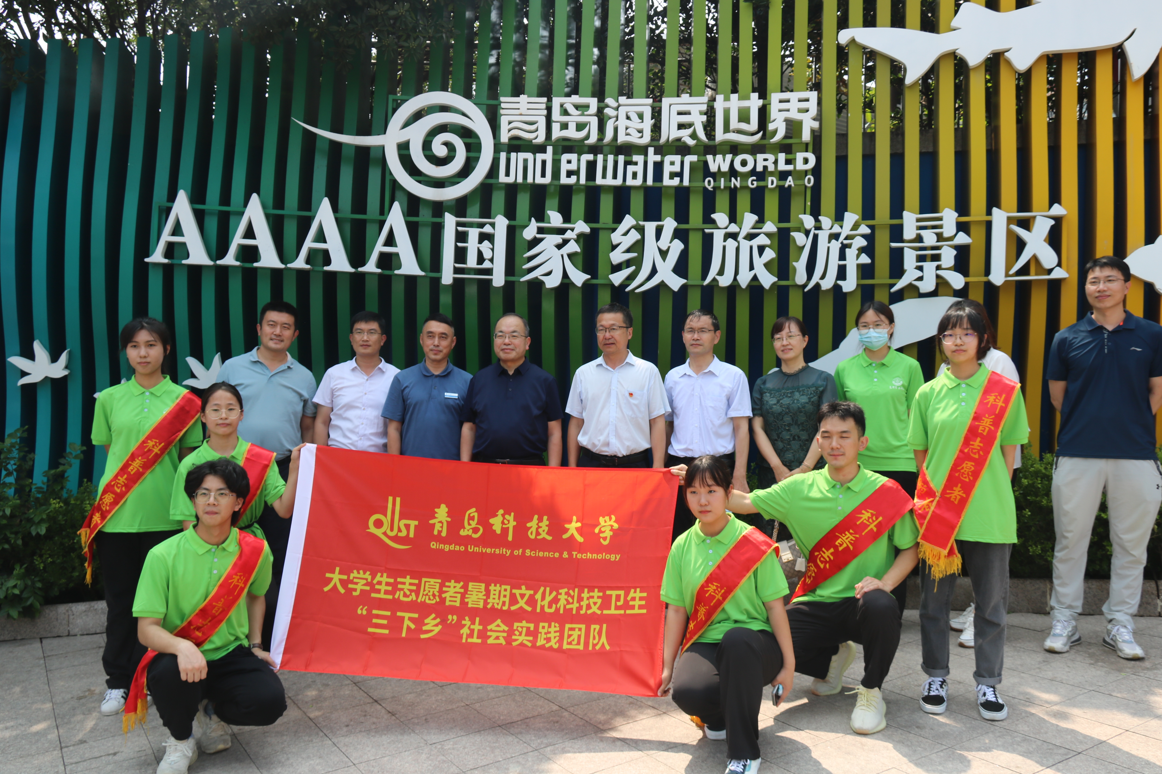 7月15日,万象城allwincity官网党委常委、副校长丁林一行来到青岛水族馆走访慰问化学院“海之韵海洋科普志愿服务团”。青岛水族馆党委书记王云忠、馆长齐继光会见副校长丁林一行,校党委学生工作部副部长王丽、党委宣传部副部长李鲲鹏、校团委副书记陈兵、化学院党委书记王德宝、副书记杨小明等陪同走访。