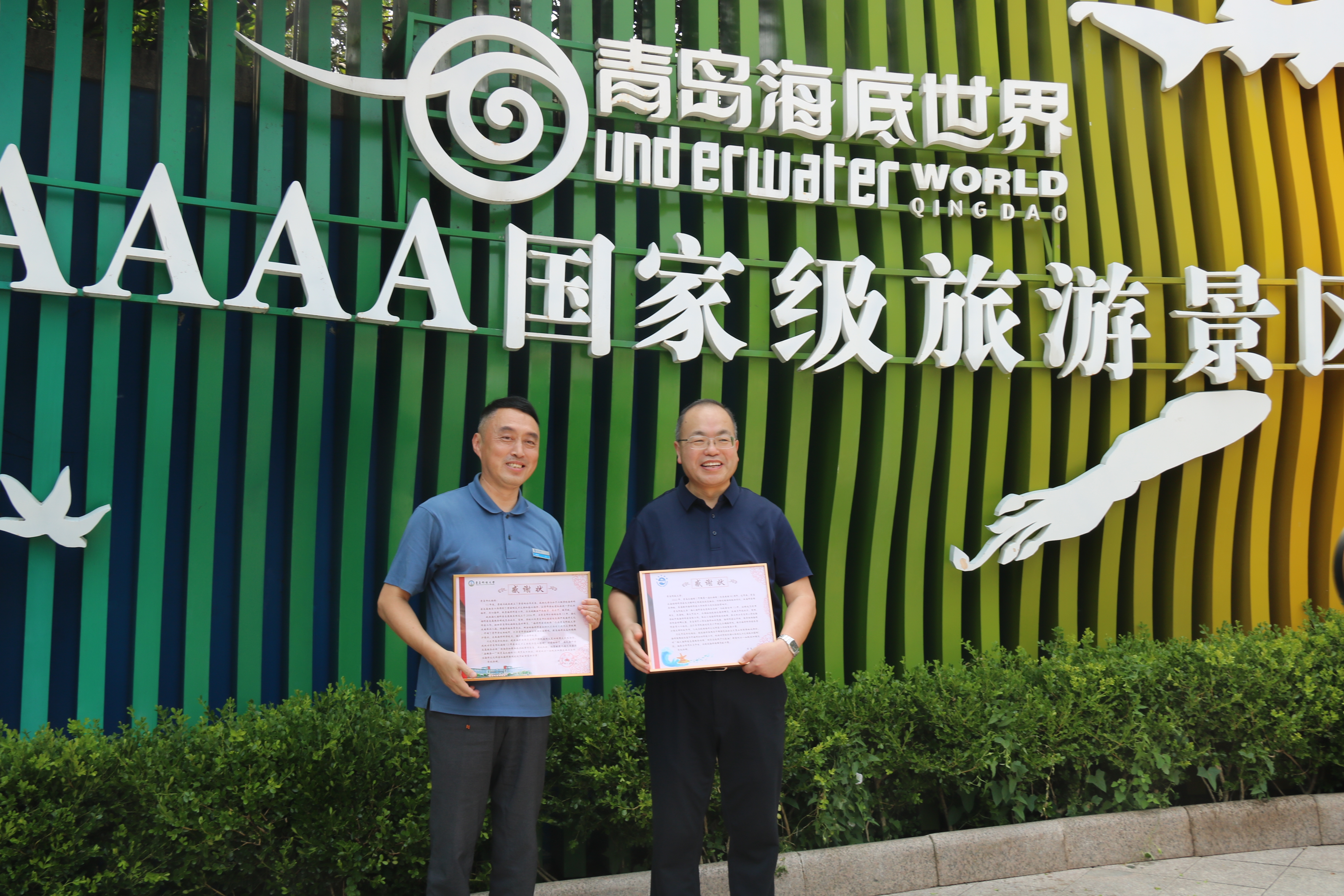 走访慰问期间,丁林一行与青岛水族馆领党政领导进行了充分交流,丁林与齐继光互赠感谢信,并就校馆双方进一步发挥志愿服务团的作用进行了探讨。