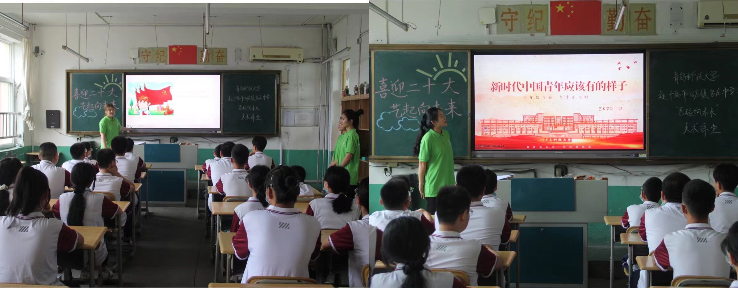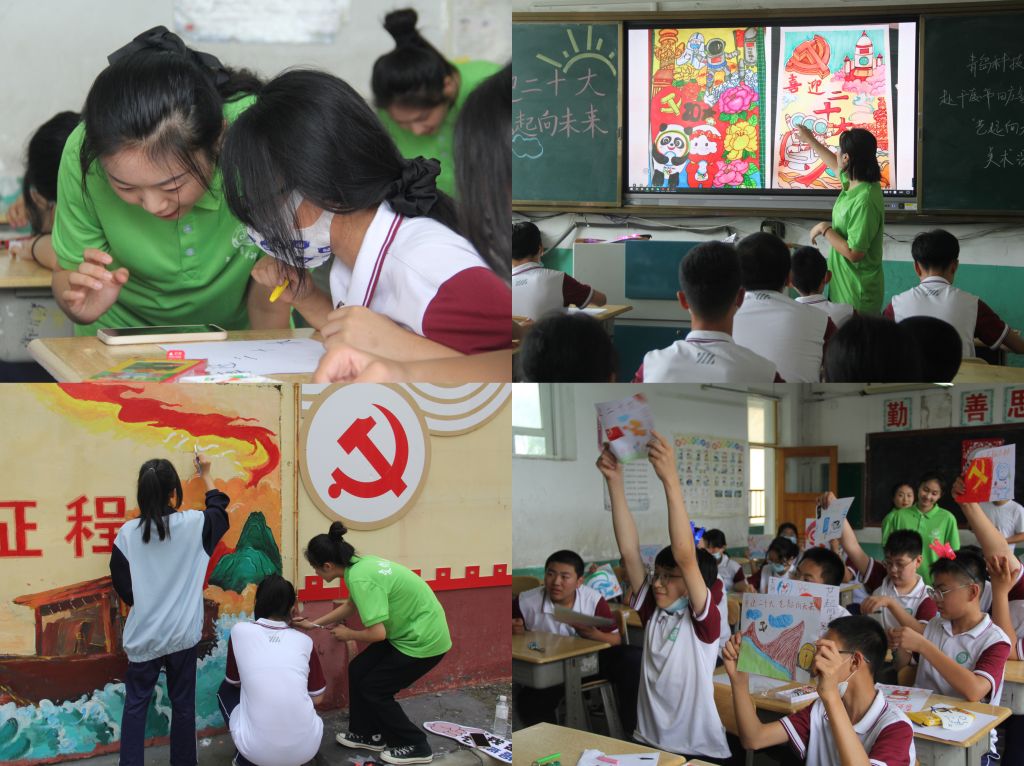 万象城allwincity官网艺术学院实践团坚持“艺术扶教,红色筑梦”的理念,利用专业优势,将青春献礼二十大等有机融入艺术课堂、文艺演出、校园墙绘当中,结合乡村教育现状开设美育实践活动,给予乡村学生艺术启蒙,点燃乡村学生的童年梦想和希望,以实际行动聚力服务乡村振兴,助力青少年成长。
