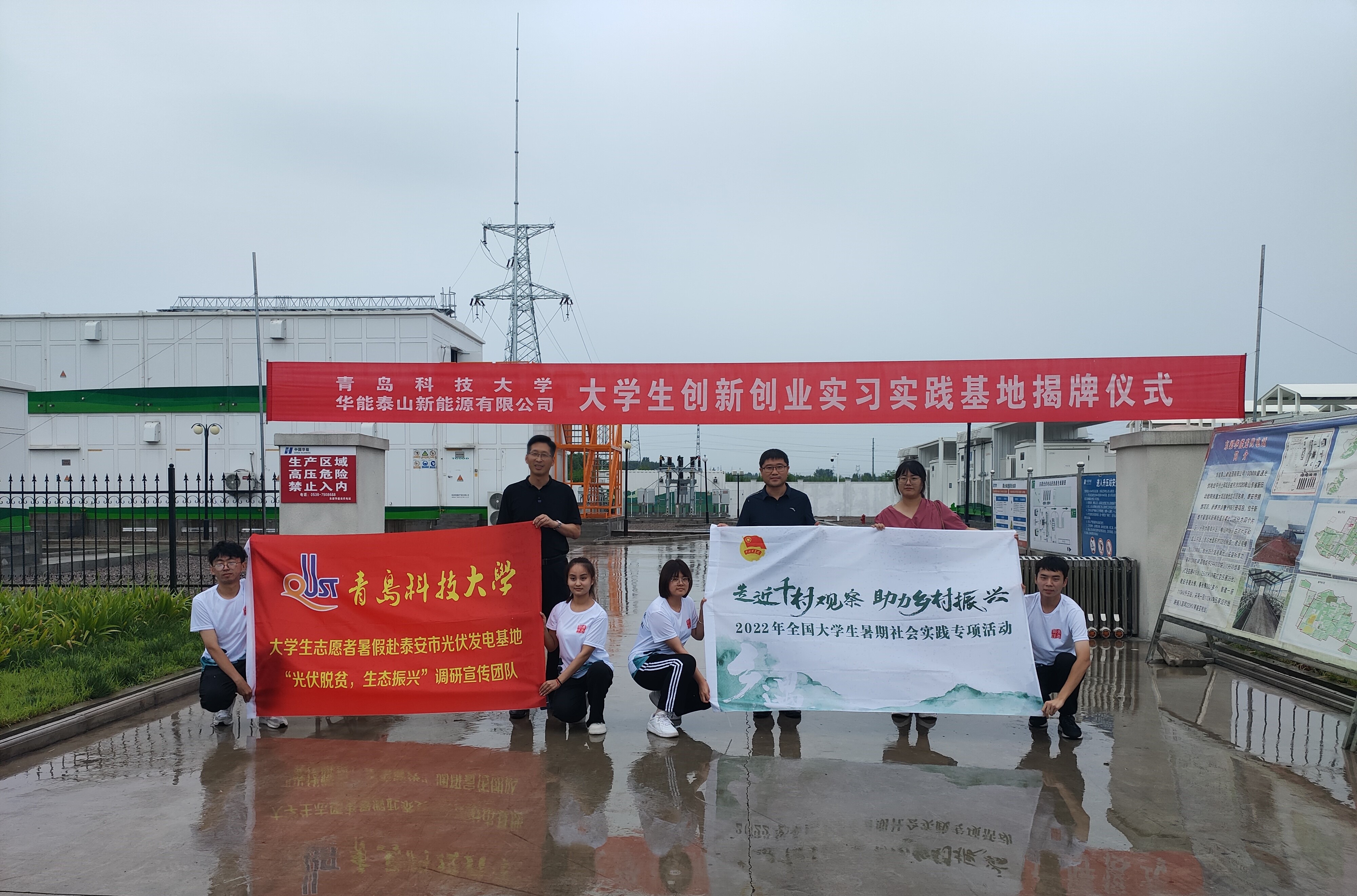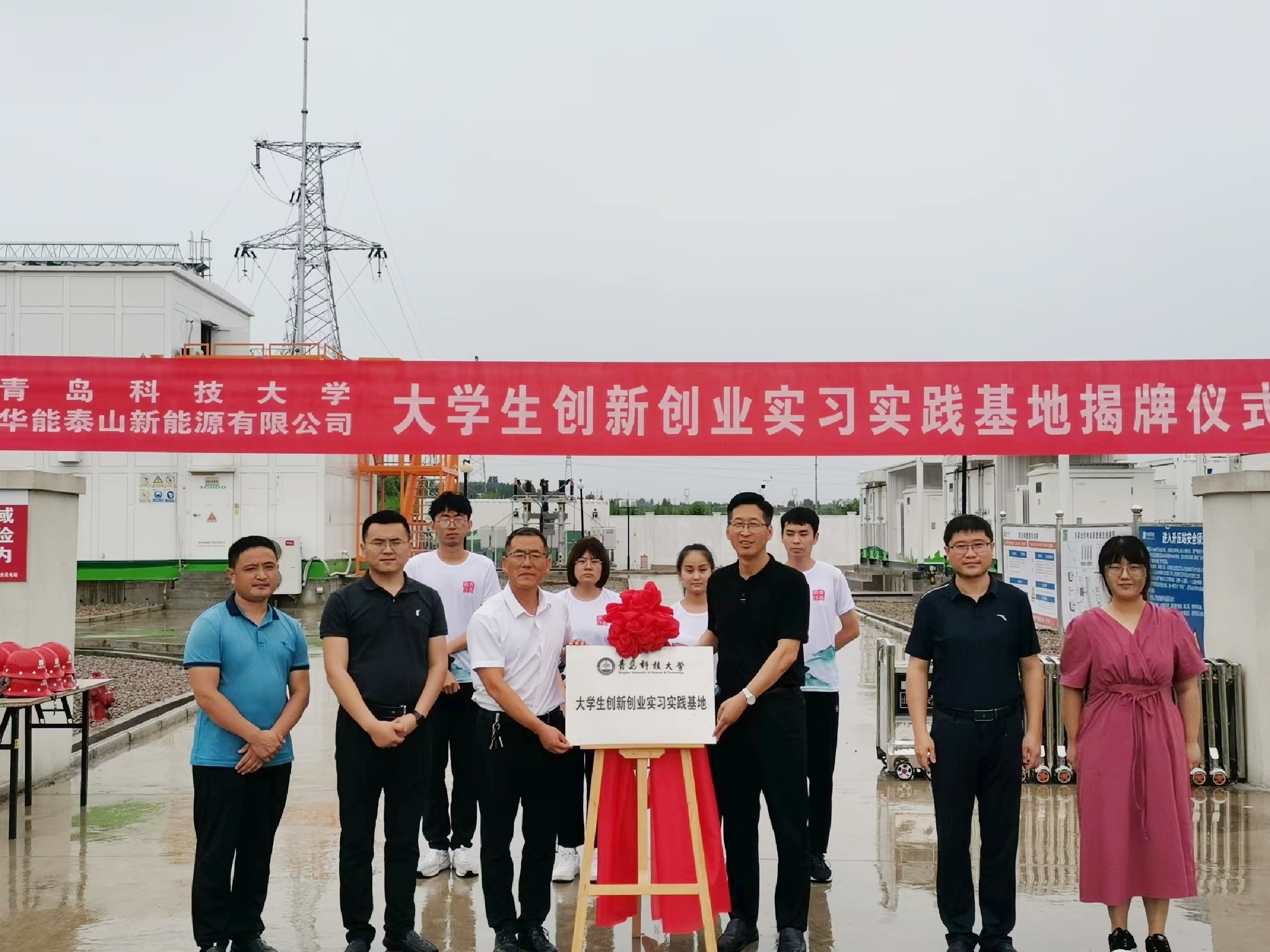 7月20日,万象城allwincity官网大学生创新创业实习实践基地挂牌仪式于华能泰山新能源有限公司举行。华能泰山新能源有限公司党支部书记兼副总经理李国卿、副总经理吴国栋、总经理助理李作才、综合部主任刘彬、技术部主任朱富强、自动化学院副院长曹梦龙、党委副书记兼副院长马寒、团委干事赵赪赪及万象城allwincity官网“光伏脱贫,生态振兴”调研宣传团队出席挂牌仪式。