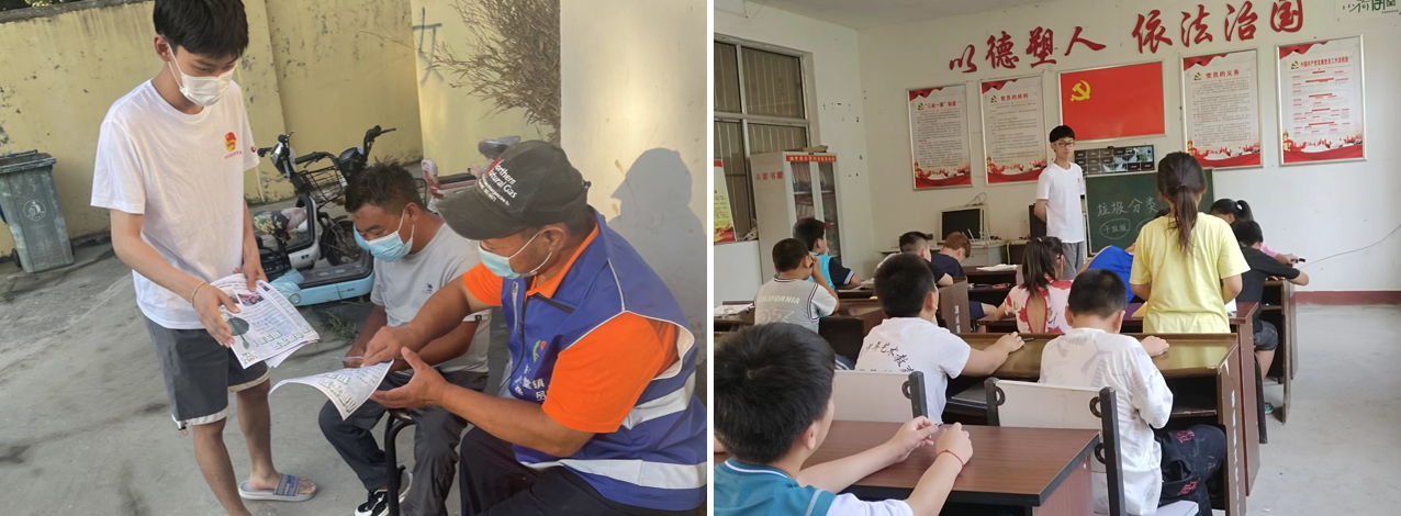 搭建绿色共享课堂,理论结合实践,深化低碳知识普及。针对孩子们对“绿色”世界的向往,团队成员顺藤摸瓜,紧抓孩子们的好奇心,在队员程玉帅的带领下,向孩子们讲环境保护的内容分为四个方面细化讲解,即:低碳生活的定义、垃圾分类的定义及重要性,土地资源的现状、保护及解决措施,乡村环境的重视与维护。针对不理解、有疑问的同学,各位老师在课间会对其进行耐心辅导,以达到知识的融会贯通。为贯彻“实践是检验真理的唯一标准”,同时巩固学生们对于低碳知识的认知。在队员鹿庆阳的带领下,我们开展了一节“垃圾分类”的实践课,每个孩子在可活动范围内自主收集一个垃圾后,进行模拟垃圾分类投放,让孩子们在实践中再一次深化对环保知识的理解。