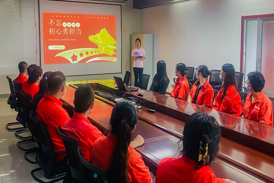 学而不思则罔,思而不学则殆,实践团注重学思结合,行悟相促,循环往复,学深悟透。参观学习期间,团队定期召开研讨会,分享相关时事,交流参观感悟,整理宣讲素材,同时,紧紧围绕“青年、文化、创新、担当”等关键词展开讨论,并对照参观企业及专访人物的发展经历、奋斗理念等分析自身不足及努力方向。以悟促行,团队更加深刻意识到做好此次理论宣讲的重要性,进一步强化了宣讲的使命感和责任感。习近平总书记在庆祝中国共产主义青年团成立100周年大会上的重要讲话言犹在耳,催人奋进,团队结合实地参观交流心得,更加深入地丰富了“不忘初心勇担当”的宣讲内涵。