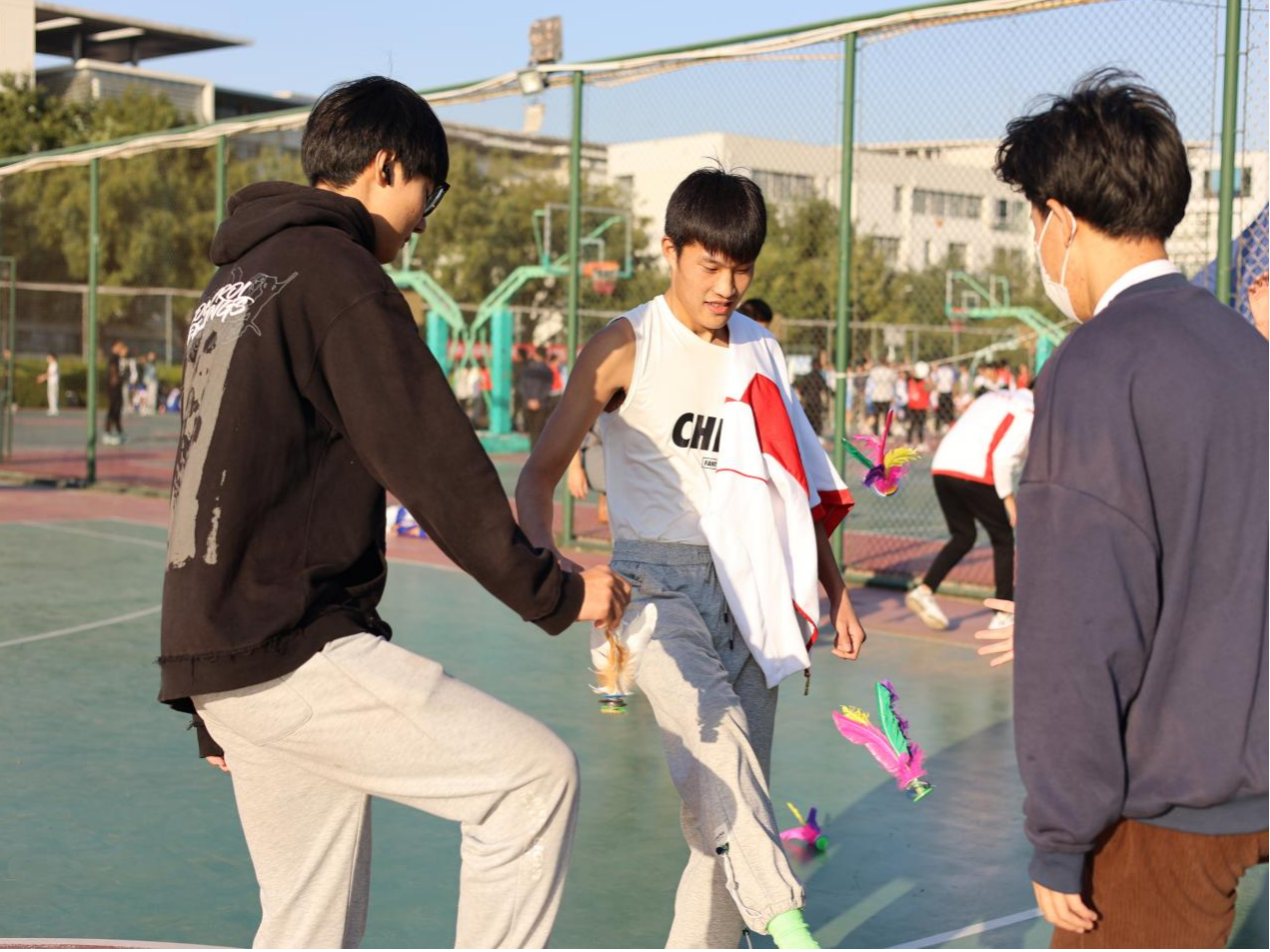 比赛中,他们在这个属于青春的舞台尽显风采,展现不轻易言弃的斗志,发顽强拼搏的体育精神。小小的毽子在空中飞舞,阳光下折射它美丽的羽毛。毽子和鞋子碰撞在一起发出很有节奏的声音,那股不气馁、不放弃的韧劲儿在每一个运动健儿身上演绎着!所有人在运动中体会着快乐,收获着成功。、