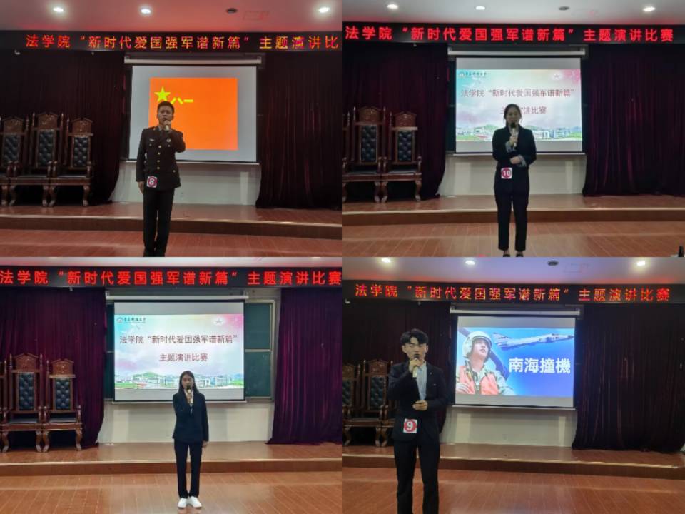 主题演讲,致敬英烈。法学院于弘毅楼A201举办“新时代爱国强军谱新篇”爱我国防主题演讲比赛,来自各专业的10位选手围绕主题同台竞技,用真挚的情感,慷慨激昂的演讲向英烈致敬,引导青年学生更加珍惜今天来之不易的美好生活,进一步展现了法学院学子的爱国情怀与责任担当。