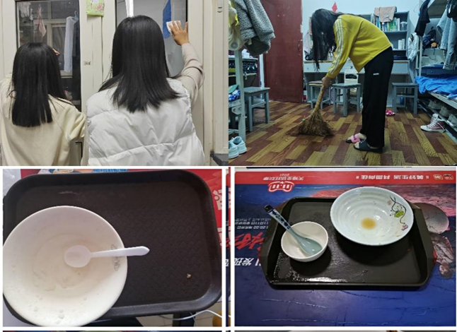 不留空想,美丽校园从我做起。心中有环保,人人齐动手。美丽整洁的宿舍环境关系到每一位同学的生活与学习,也关系着校园整体干净整洁的面貌。为此,学院开展“宿舍是我家,文明靠大家”宿舍卫生清扫活动和光盘活动,鼓励同学们自觉打扫宿舍,践行光盘行动。增强同学们对文明环保的认识,加深对"美丽校园"的理解,在今后的学习与生活中真正形成环保意识,以更积极的心态和行动投入到美丽校园的建设中去。