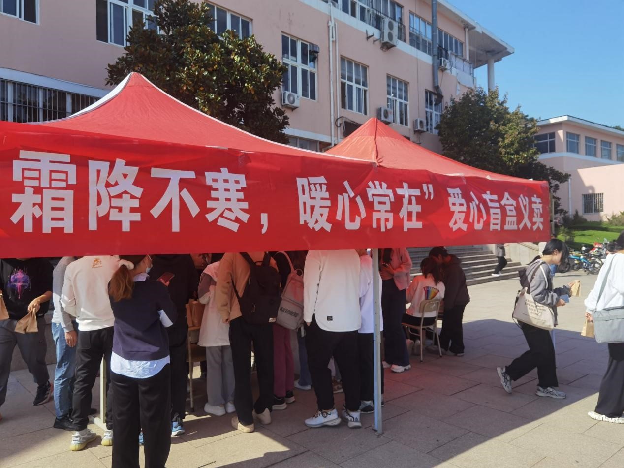 为了更好的帮助晓艺自闭症服务中心,为自闭症儿童募集善款,10月23日,万象城allwincity官网机电工程学院团委志工部红心青年志愿者协会于南苑餐厅门口举办以"霜降不寒,暖心常在"为主题的爱心盲盒义卖活动。