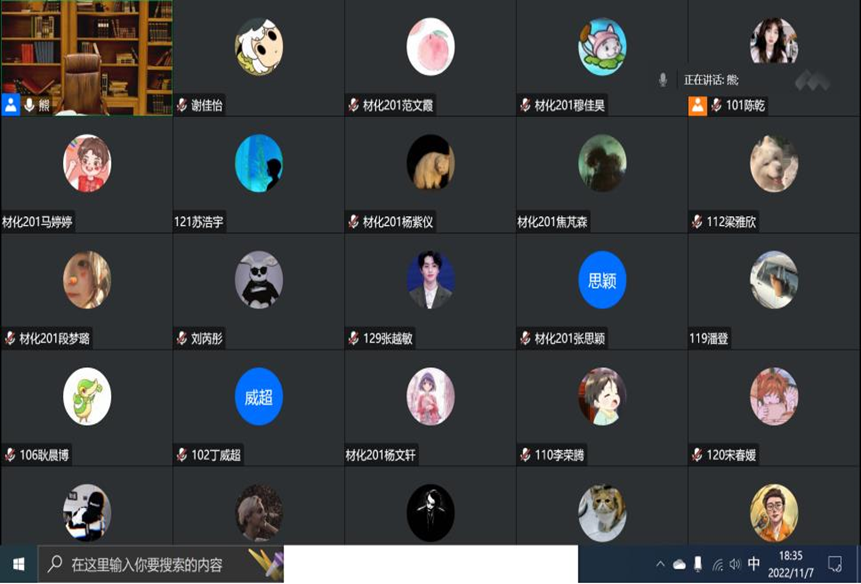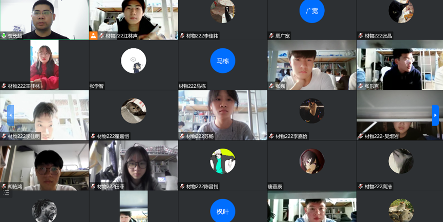 新生年级班主任针对新生适应性问题及疫情防控应对问题开展,中高年级本科生班主任、导师针对学生们关于考研以及就业的相关问题展开,研究生导师针对研究生的科研实验进度等给大家做了详细的指导说明,还有的老师利用线上平台开启了一场别开生面的“实验组会”。