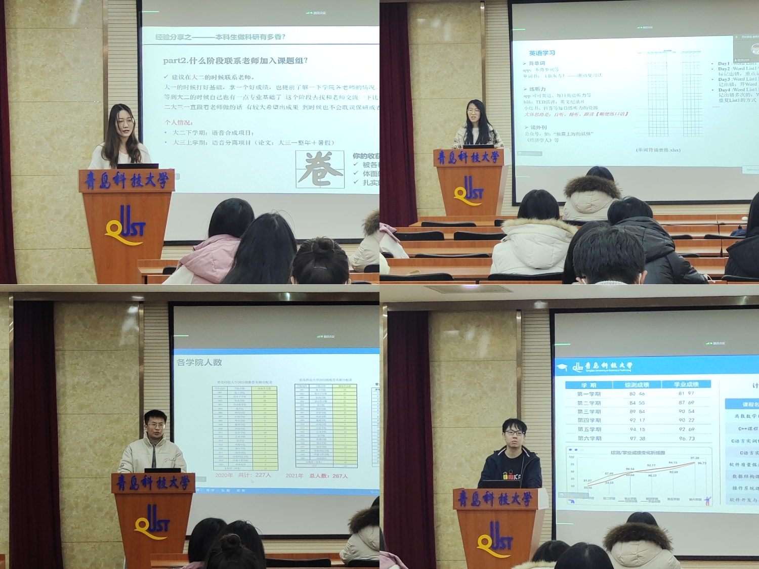 用心声交流,让“研”梦启航。为推动学院整体良好学风建设,切实提高同学们的学习主动性和积极性,信息学院、大数据学院于12月4日晚6点,在学院楼402会议室以线上线下结合的方式开展保研经验分享会。