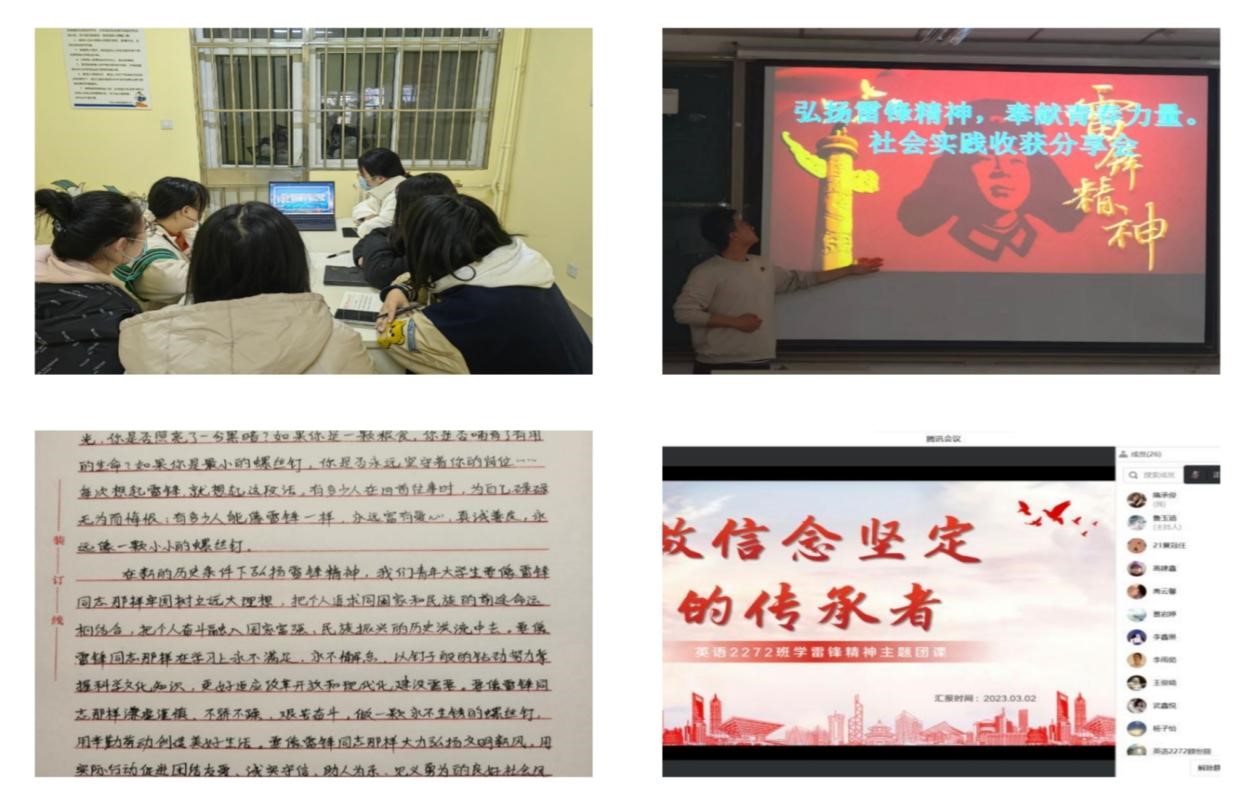 深入学习,领悟内涵,砥砺志愿青春。校区团委组织团员青年专题学习、交流座谈,认真学习领会习近平总书记关于深入开展学雷锋活动重要指示精神。学生会、军协举行“青春建功新时代 学习雷锋志愿行”升国旗仪式,发布“学雷锋精神•展青春风采”倡议书,号召广大团员青年主动加入学雷锋志愿服务月实践活动,做雷锋精神的传承者。外语2172团支部等155个团支部开展“学习雷锋精神,不负时代重托”、“弘扬雷锋精神,奉献青春力量”等主题的理论学习和主题团日活动200余次,通过线上线下宣传教育、服务实践、传播志愿服务文化等多种方式,引导学生积极投身志愿服务,传递青春正能量。