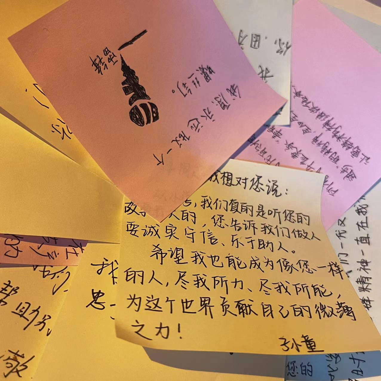 青春告白雷锋,隔空致敬先辈。各支部组织开展“向雷锋同志告白”活动,通过手写寄语,引导同学们向雷锋同志看齐,成为雷锋精神和时代正能量的传递者。五彩斑斓的便签纸上,写满了句句暖心的祝福和真切的期盼,娟秀的字迹书写了他们对雷锋精神的理解,铿锵文字传承雷锋精神,这是2022级团员青年对雷锋同志的“云告白”,是青春的生动注脚。