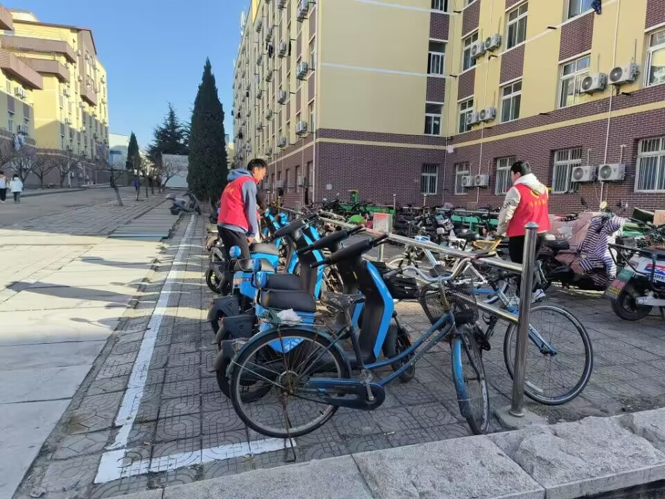 化工学院组织开展“让共享电车回家”雷锋精神公益活动。同学们统一穿着志愿者服装,将乱停乱放的电动车运送回指定区域,在校园的电动车停放点对电动车进行整齐摆放,通过志愿服务为同学们提供干净整洁的校园环境,切实将“为人民服务”思想落实于实处。