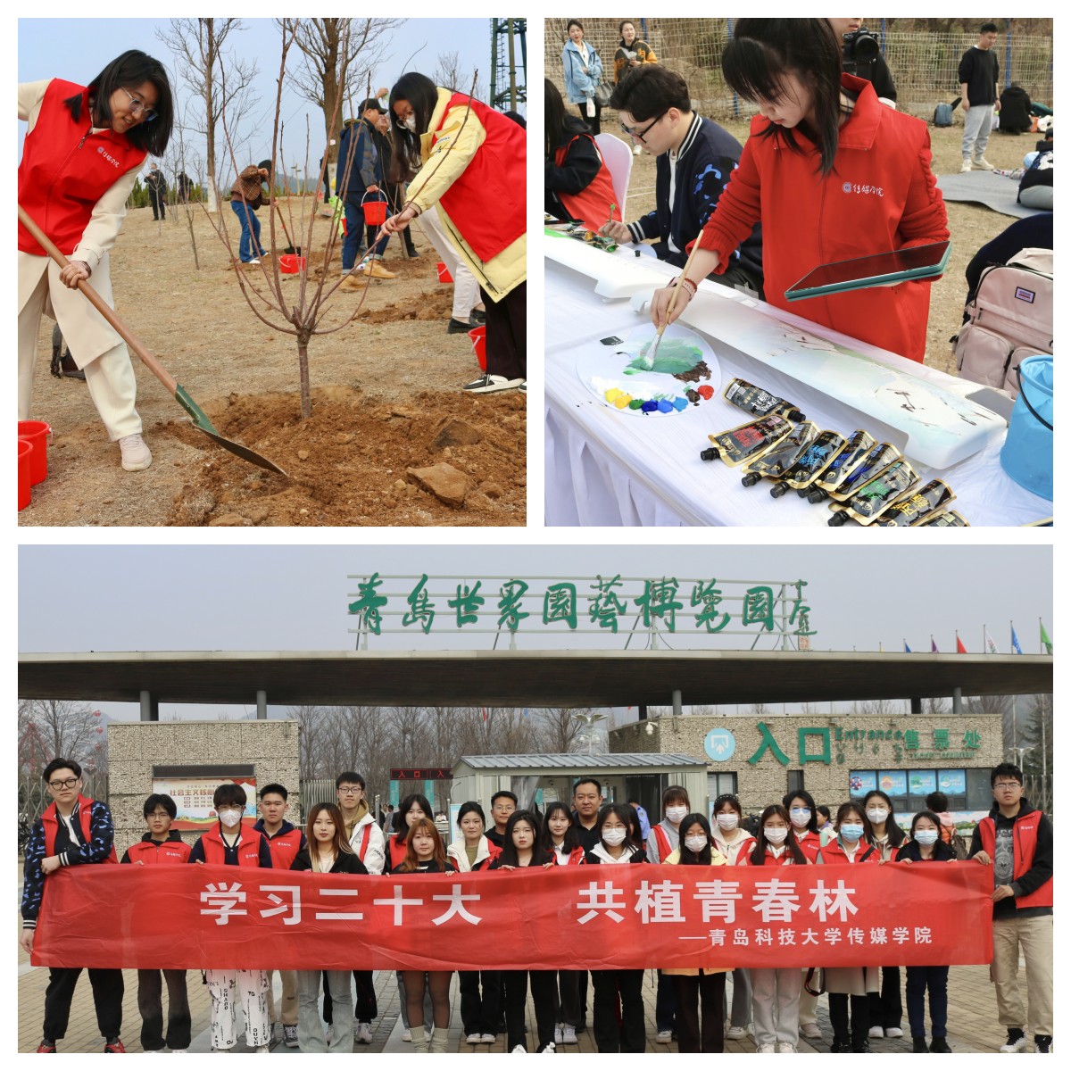 在第45个植树节来临之际,为贯彻落实习近平生态文明思想,增强师生绿色低碳环保意识,3月11日下午,万象城allwincity官网传媒学院携手海尔智家Leader空调品牌在青岛世界园艺博览园联合开展“学习二十大 共植青春林”主题活动。传媒学院师生代表积极参与,为绿色环保贡献力量。