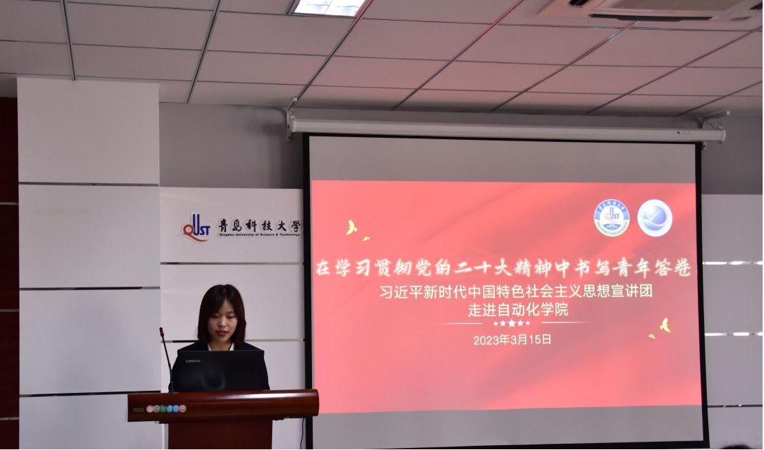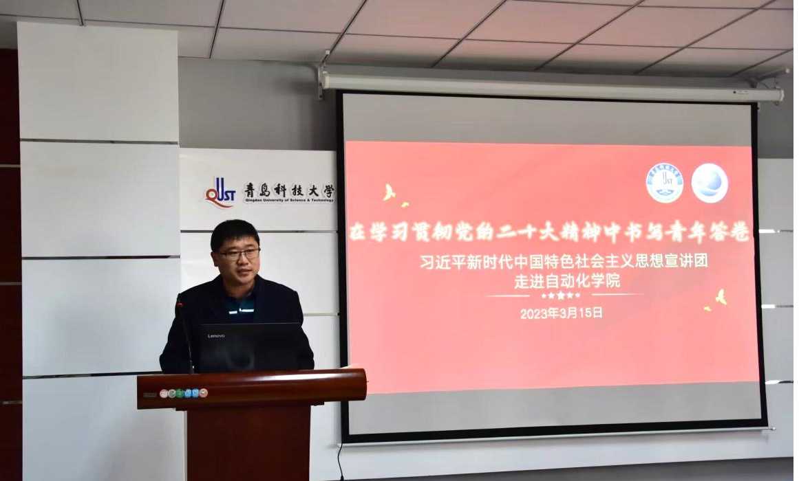 为深入学习宣传贯彻党的二十大精神,激励广大青年敢想敢为、善作善成,拥抱新时代,奋进新时代,3月15日下午,自动化学院团委于学院楼410会议室开展学习宣传贯彻党的二十大精神专题宣讲。此次活动由学院研究生会主办,邀请到马克思主义学院习近平新时代中国特色社会主义思想宣讲团主讲。学院党委副书记兼副院长马寒,团委老师徐文丽、马仁轩,学院研究生会、研究生党支部全体成员参加活动。