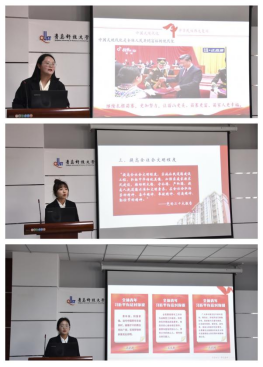 庞靖、李婷婷、吕靓、王云敏、申文理、于洋六位宣讲团成员分别围绕不同主题展开宣讲。庞靖、李婷婷把握“学雷锋志愿服务月”这一重要时刻,以“传承雷锋精神,弘扬时代新风”为重点展开宣讲,结合“中华民族伟大复兴”、“贯彻落实新思想”等方面,引导青年学子“坚定理想信念,牢记为人民服务”、“坚持终身学习,保持进取锐气”、“坚持实事求是,勇于开拓创新”,生动诠释了党的二十大精神和新时代雷锋精神的践行与落实;吕靓、王云敏结合中国青年的时代特点,突出中国青年的“守正”与“创新”,探讨了青年担当时代使命的必要性以及应如何担当时代使命;申文理围绕“为何要推进文化自信”和“怎样推进文化自信”两个方面展开具体讲解;于洋则以“守好绿水青山坚持人与自然和谐共生”为题,结合党的二十大报告重点内容解读,呼吁广大新时代青年以实际行动贯彻可持续发展理念,为建设美丽中国贡献力量。