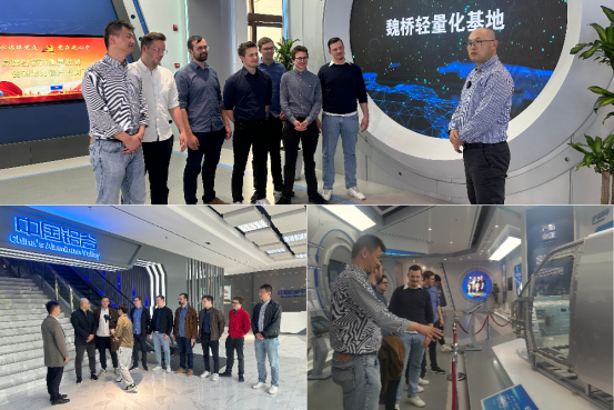 滨州地区铝加工材生产能力占全国总产能的23%左右,比美国的总产能还大多21%,其中主要产能集中于邹平市,邹平被称之为中国铝谷实至名归。在中国铝谷科技展览馆,中德学生对邹平铝产业的发展历史、发展格局、产业转型升级和高质量发展等情况有了深入了解,展览馆以“铝”的特性为设计元素,共分为“序厅”、“工业时代,铝创佳绩”、“聚焦邹平,铝业之都”、“优势平台,助力腾飞”、“大道行远,筑梦未来”五大主题区,展区利用CAVE系统,利用多个投影画面组成虚拟空间,对邹平铝产业进行了全方位、多角度、立体化的展示。参观者置身其中,亲身感受科技感、工业感、便捷智能的未来铝谷体验,留学生们更是对于中国工业发展取得的巨大成就纷纷点赞。