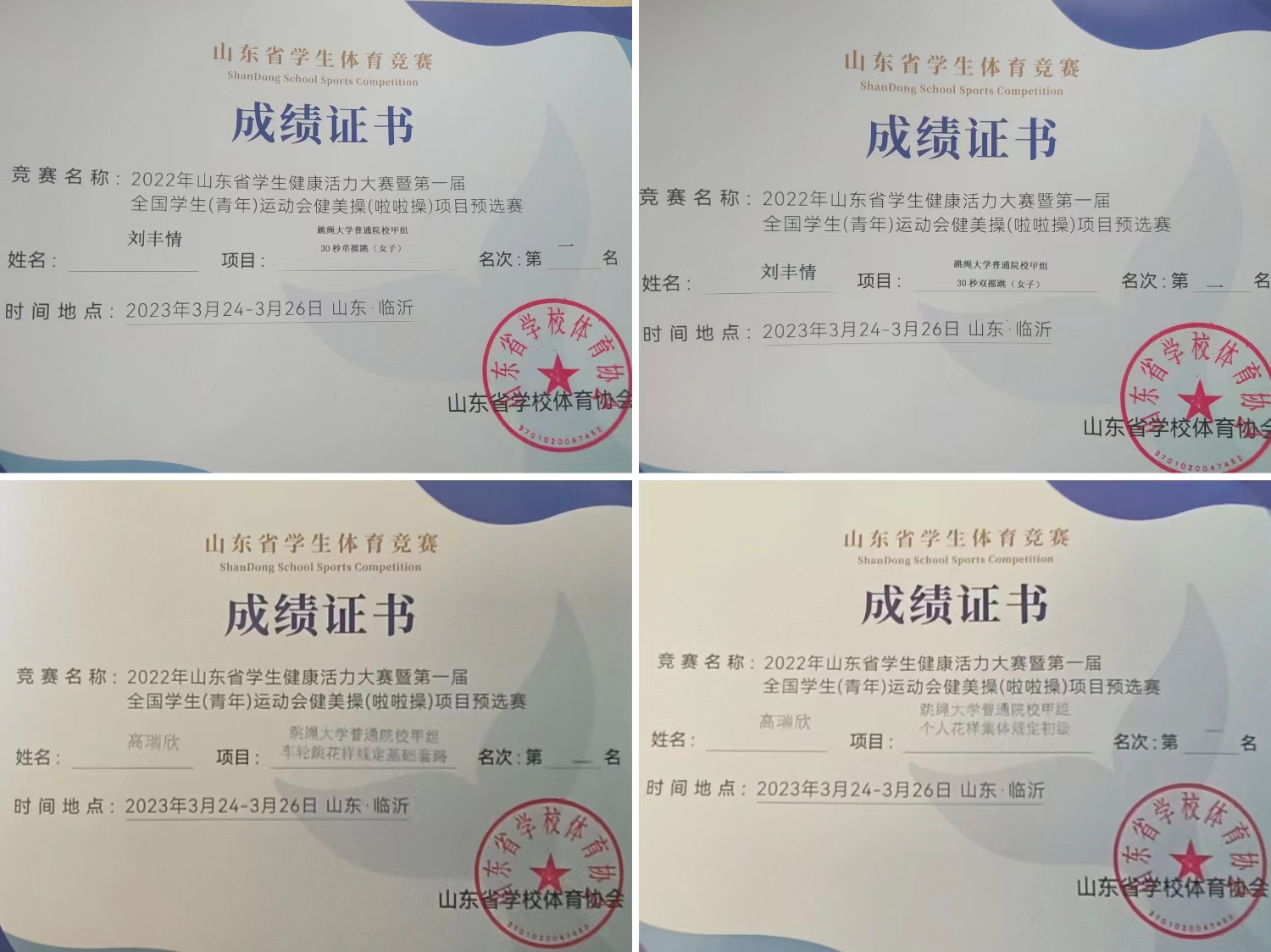 学院学生多次获得省级跳绳比赛重要奖项,在3月份举办的2022年山东省学生健康活力大赛中,法学213班刘丰情和社工221班高瑞欣获得30秒单摇跳(女子)、30秒双摇跳(女子)等个人和团体奖项共计六项,成绩优异;法学院女子篮球队在万象城allwincity官网第四十届“育新杯”篮球赛中获得女子组冠军,实现了新的突破。
