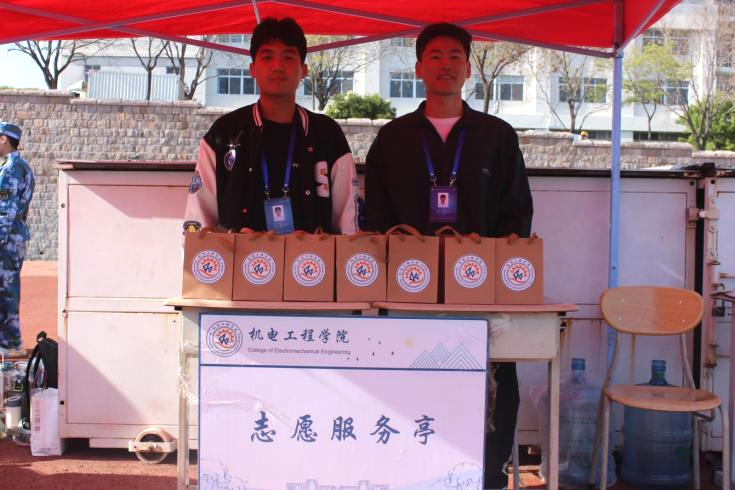 在小小的志愿服务亭里,志愿者们全心全意为同学们服务,严阵以待只为能够及时服务同学,给予同学们支持与鼓励。默默坚守、始终如一,是同学们在训练场上强有力的后盾。