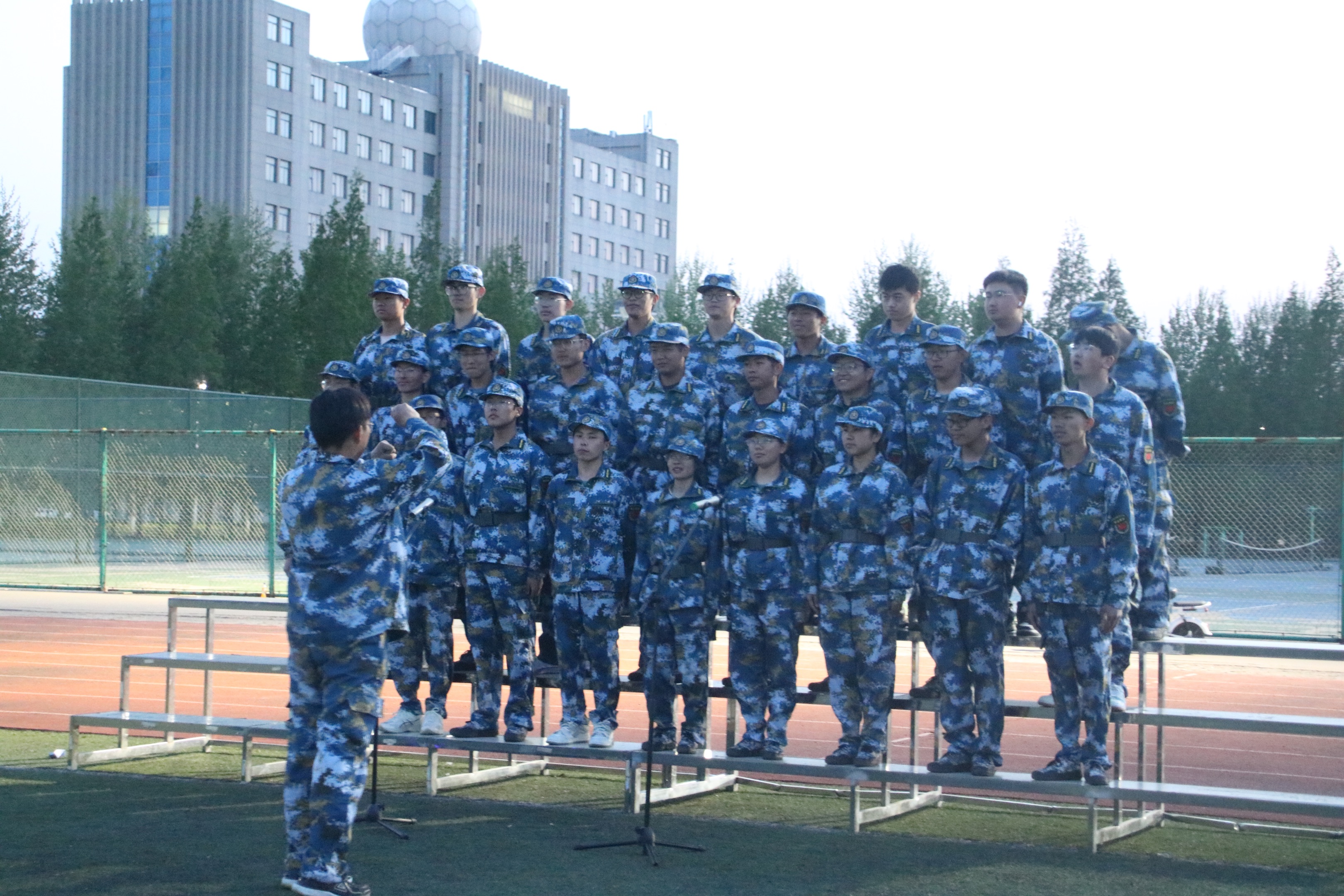 为传承五四精神,丰富军训生活,激发校区学子爱校荣校情怀,增强校区各专业学生凝聚力与集体荣誉感。4月26日晚,“青春向党 唱响荣光”五四青春歌会初赛暨2022级校歌合唱比赛在二期操场举行。