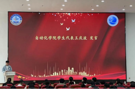 测控194班王庆波代表实习生就实习期间所思所得与在座同学做分享。王庆波表示,在今后的学习生活中,将秉持勤奋好学、积极进取、勇于实践的理想信念,努力成为立大志、明大德、成大才、担大任的时代新人。