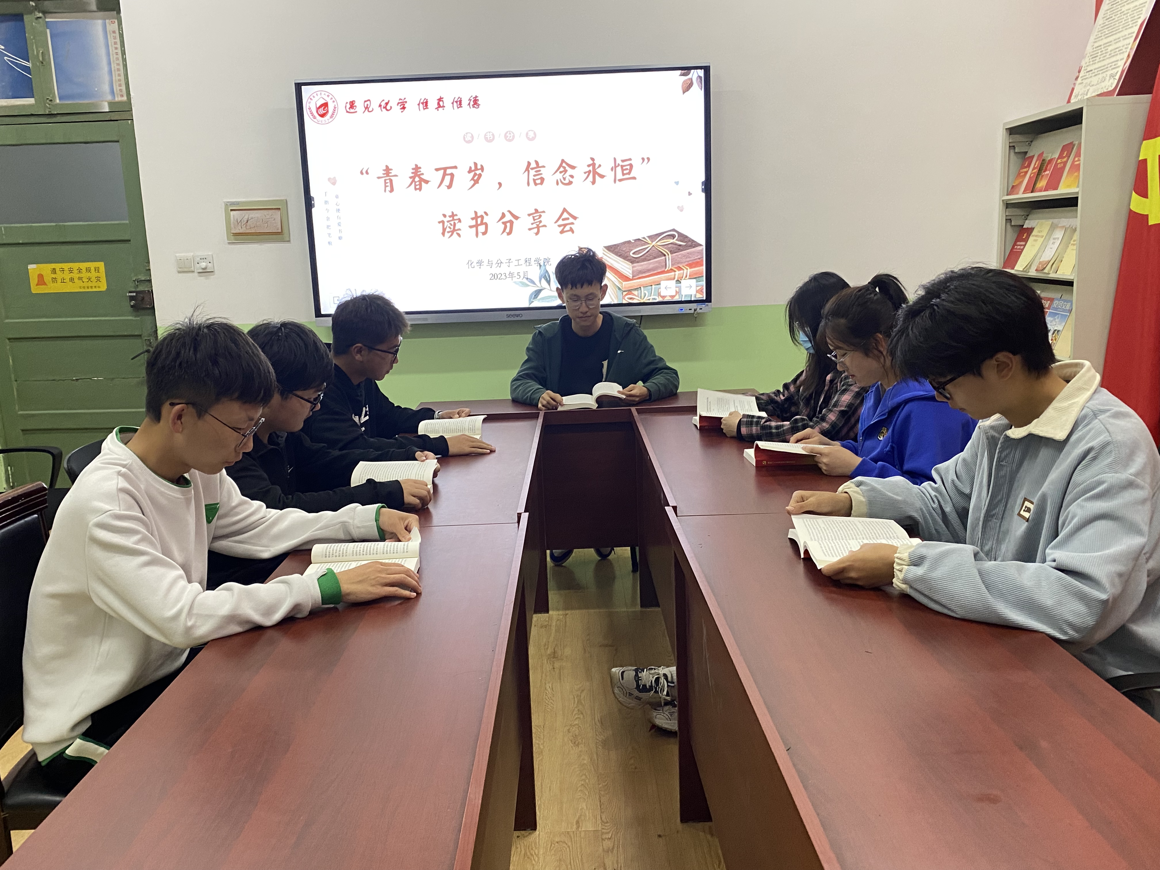 学院学生会举办“青春万岁,信念永恒”读书分享会,组织团员青年集中学习《论党的青年工作》《习近平与大学生朋友们》等书籍,持续推进“个十百千万”读书工程,引导团员青年在学原文、读原著、悟原理中坚定理想信念。