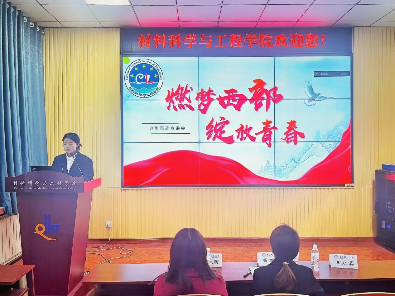 青春奋斗正当时,人生理想在西部。材料学院团委通过举办此次“西部计划”典型事迹宣讲会,号召广大青年学子们到西部去,到基层去,到祖国和人民最需要的地方去,将青春故事书写在西部广袤的大地上,用脚步丈量大好河山,用奋斗谱写青春年华。
