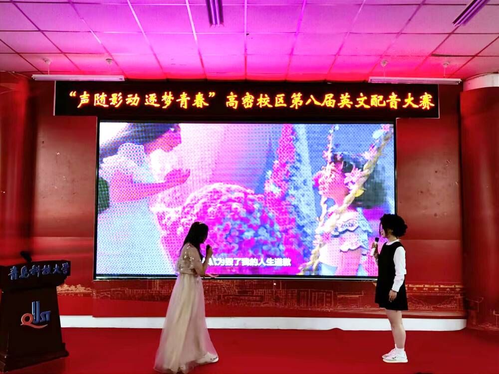 5月17日晚,高密校区“声随影动,逐梦青春”第八届英文配音大赛于通德会堂201举行。英语专业教师王妮、蔡振群、张洁,辅导员李鹏飞、秦鹏涛担任决赛评委。