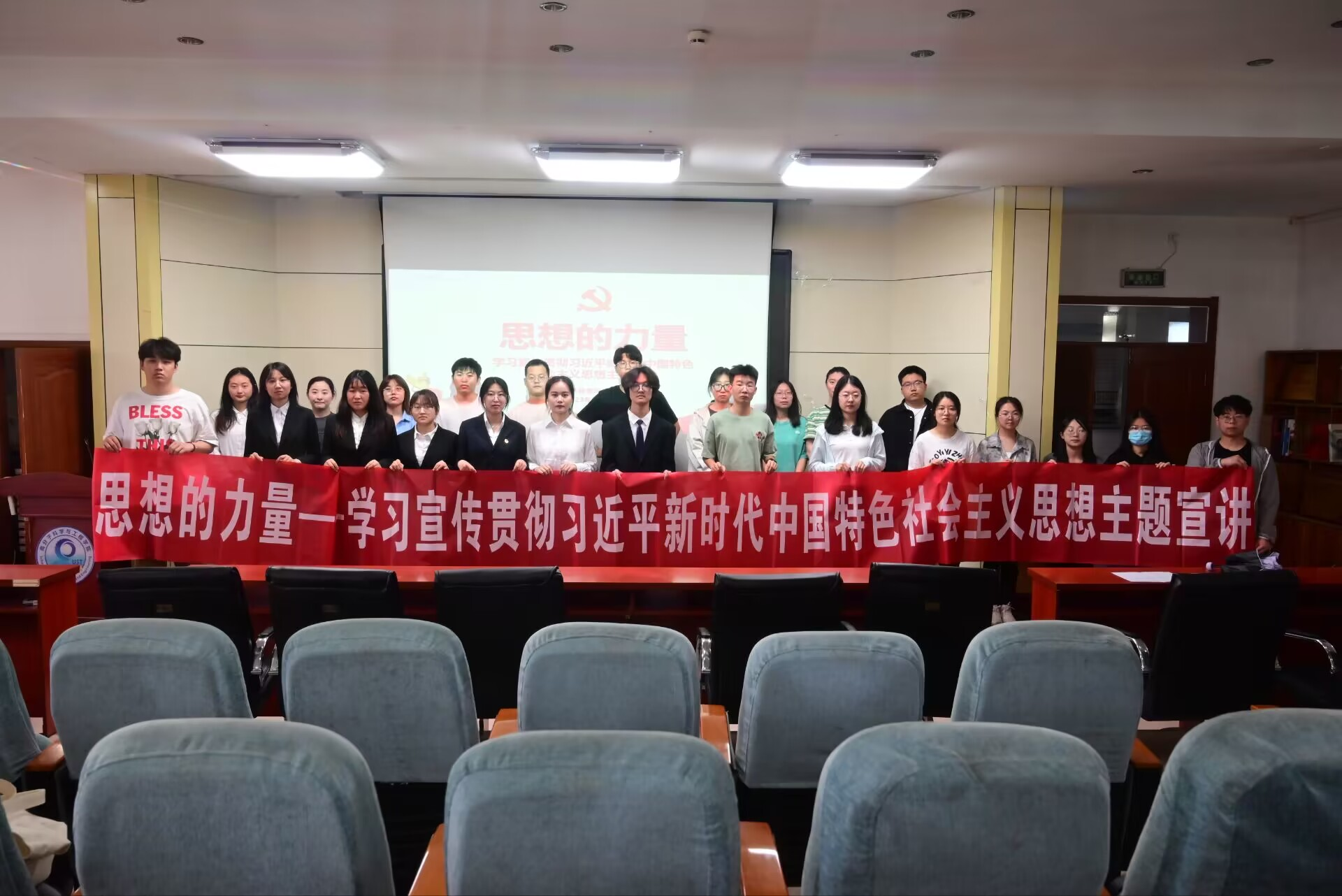 5月27日,学院举办“思想的力量”--学习宣传贯彻习近平新时代中国特色社会主义思想主题宣讲会,党员先锋岗成员结合所见所闻、所思所想,用朴实的语言、真挚的情感讲述了理论的内涵、发展的成就、奋斗的故事以及青年的使命,增强广大青年对习近平新时代中国特色社会主义思想的政治认同、思想认同、理论认同和情感认同。