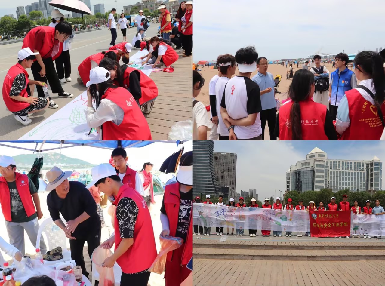 为深入开展学习贯彻习近平新时代中国特色社会主义思想主题教育,推动主题教育理论学习和实践活动进一步走深走实,引导青年学生担负起宣传、践行生态文明理念的时代责任,6月4日上午,环境学院后天环保协会赴石老人海水浴场开展“齐绘百米生态画卷 共倡人与自然和谐”、“海洋减塑捡塑”系列主题活动。该活动是山东省青岛生态环境监测中心青工委联合八所驻青高校生态环保社团,为建设人与自然和谐共生的现代化凝聚共识、汇聚力量开展的“六五”环境日国家(山东)主场宣传活动。