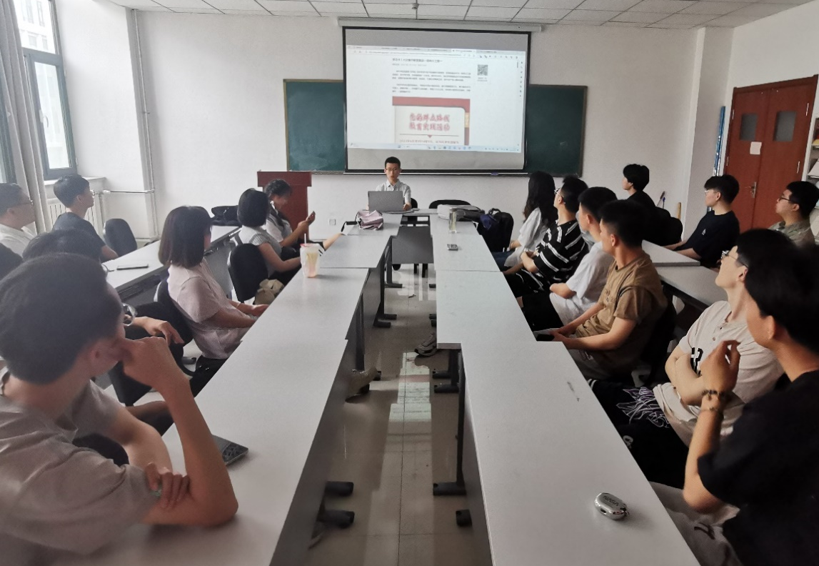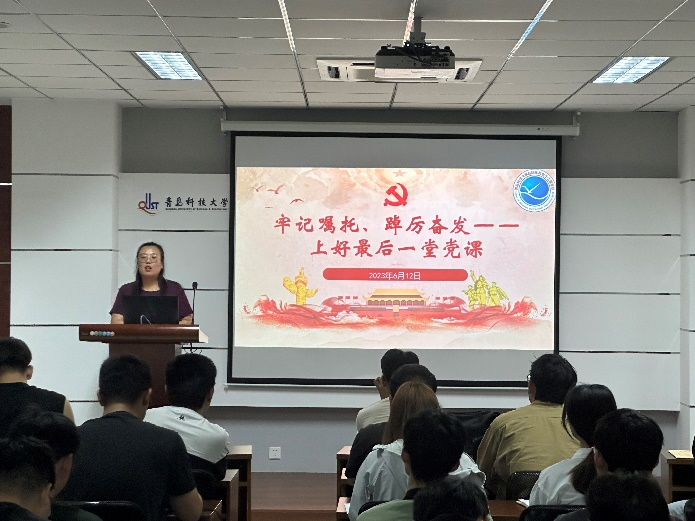 6月12日,2023届毕业生党员于学院楼410会议室开展“最后一堂党课”,学生第一党支部书记郭蒙蒙结合学生们大学四年学习生活的经历,对即将踏上新的学习和工作岗位的同学们提出了殷切的期盼和嘱托,希望同学们能够勇于担当党员责任,时刻不忘党员身份,不断提高党性修养,以昂扬姿态踏上新征程,以奋进青春建功新时代,让青春在全面建设社会主义现代化国家的火热实践中绽放绚丽之花。