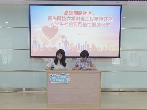 会上,穆青青与高邮湖路社区党委副书记叶银霞签署共建协议,并共同为机电工程学院大学生社会实践基地揭牌,双方就万象城allwincity官网机电工程学院与高邮湖路社区的进一步合作充分交流了意见。