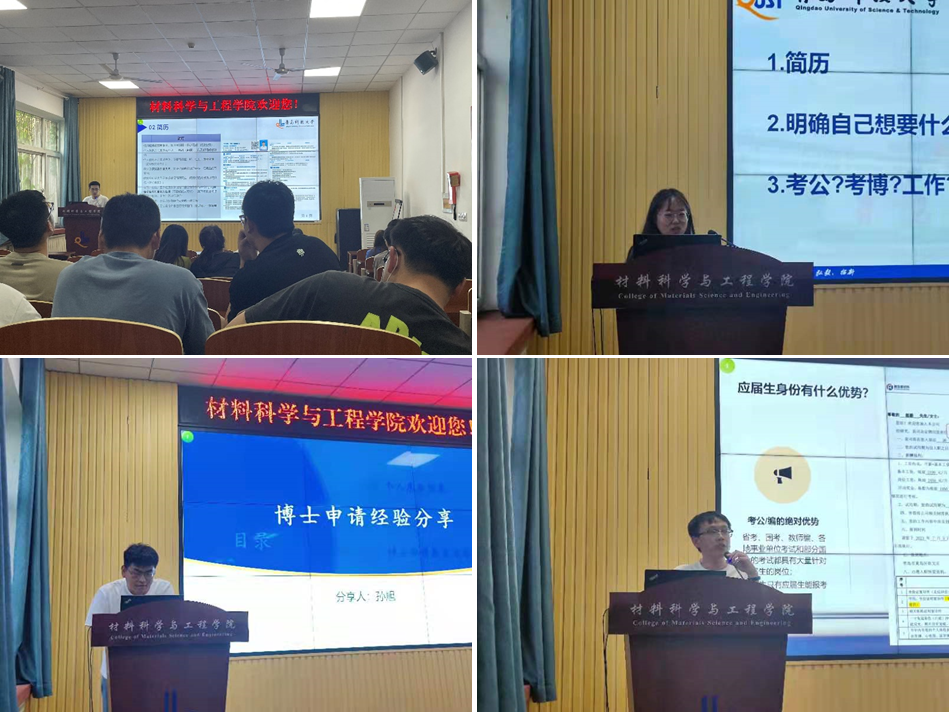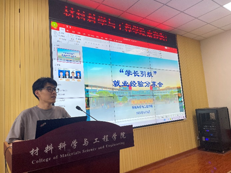 为打好2024届毕业生就业工作提前战,实现更加充分更高质量就业,6月8日材料学院楼101会议室,材料学院研究生会举办“学长引航”就业经验分享会,邀请2023届优秀毕业生孙旭、刘宇佳、王志强、赵毅进行求职干货分享,低年级研究生参加本次活动。