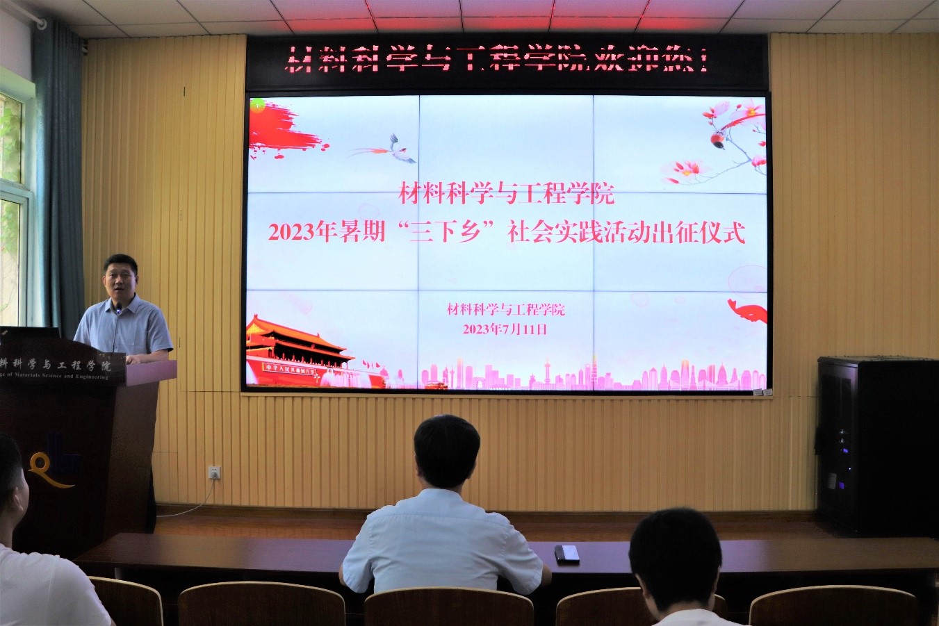 为进一步推动学习贯彻习近平新时代中国特色社会主义思想主题教育走深走实,引导青年学子在实践中砥砺品质,增长才干,7月11日下午,材料学院在101会议室举行2023年暑期“三下乡”社会实践出征仪式。学院党委书记孟照国、党委副书记兼副院长葛夫国、学工办主任薛蓉、全体辅导员及社会实践团队成员参加了此次出征仪式。仪式由辅导员刘亚鑫主持。