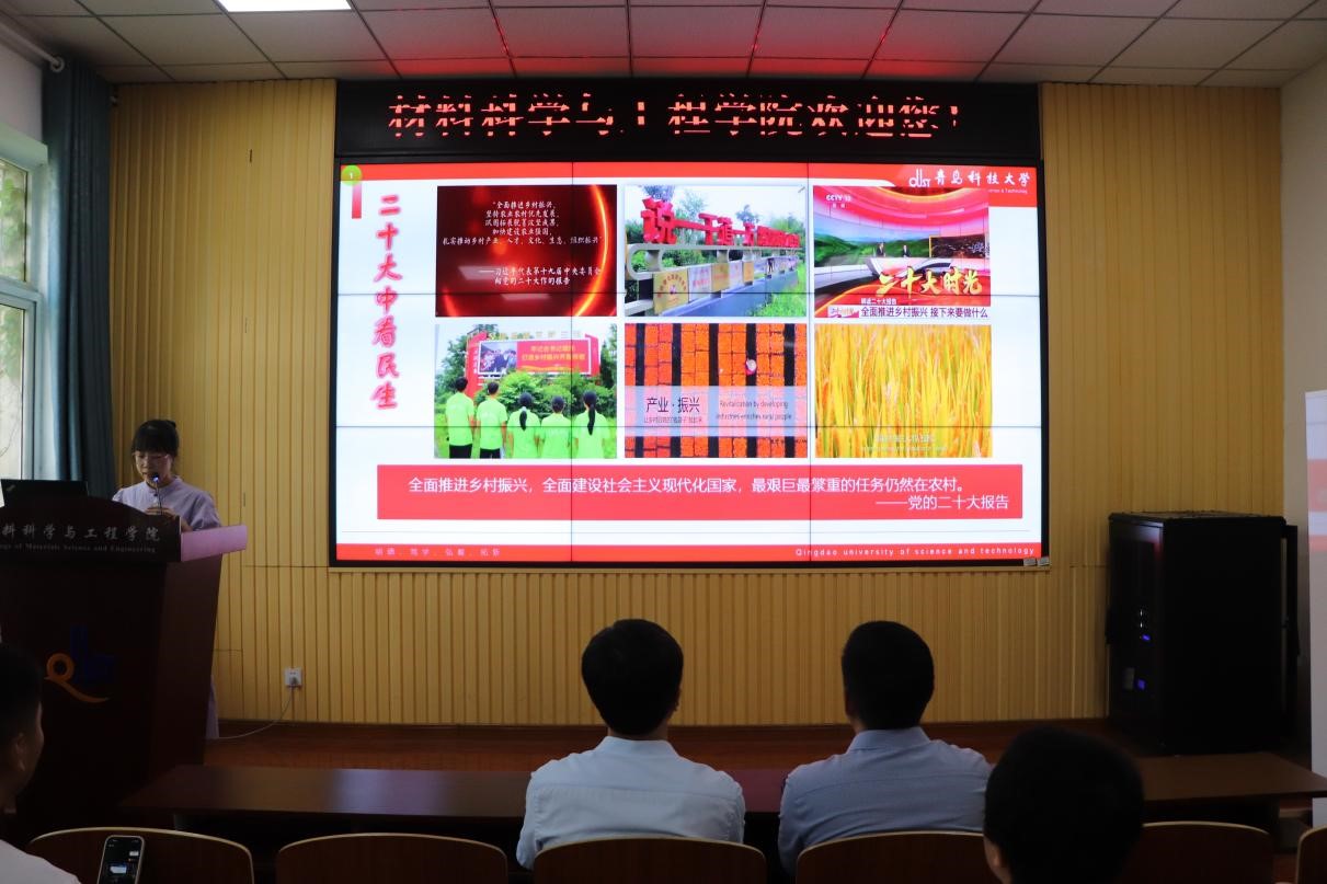 仪式上,山东省社会实践优秀学生材化201班段梦璐同学结合自身暑期社会实践的经历进行了分享,她详细介绍了自己作为暑期社会实践队的队长带领实践团队到济南市章丘区白云湖街道、三涧溪村、长清区马山镇牛角沟村进行调研的过程以及心得经验,分享了团队到济南市济阳区开展“城乡同光”义务支教的经历以及成长收获,提供了关于社会实践活动中在地点选择、计划制定、队员分工、活动总结等方面的建议。