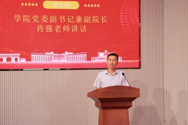 肖强书记代表学院党委对参加此次暑期“三下乡”社会实践活动的师生表示热烈祝贺,并结合我校青年师生投身实践的生动典型案例,对即将出征的志愿者提出四点希望:一是要始终坚持用脚步丈量祖国大地,在实践过程中深入农村、社区、企业去调研,在社会实践的大课堂中认识新时代的伟大成就和伟大变革,收获实打实的经验和成长;二是要始终坚持用眼睛发现中国精神,主动对接乡村振兴等国家重大战略和重大任务,创新实践载体,深入调查研究,自觉成为中国精神的信仰者、践行者、传播者;三是要始终坚持用耳朵倾听人民呼声,结合自身专业知识和技能为群众办实事、办好事,将社会观察、感受思考、措施办法转化为实实在在的实践成果,努力获取真知灼见,真正地了解国家、奉献国家;四是要始终坚持用内心感应时代脉搏,立足调查研究、主动发现问题、深入分析问题、努力解决问题,练就过硬本领。最后,肖书记提醒大家守牢安全底线,增强安全意识,服从管理,统一行动,在社会实践中认识社会,在社会服务中增长才干,在艰苦环境中砥砺品质,在深入群众中锤炼作风,在联系实际中寻找差距。