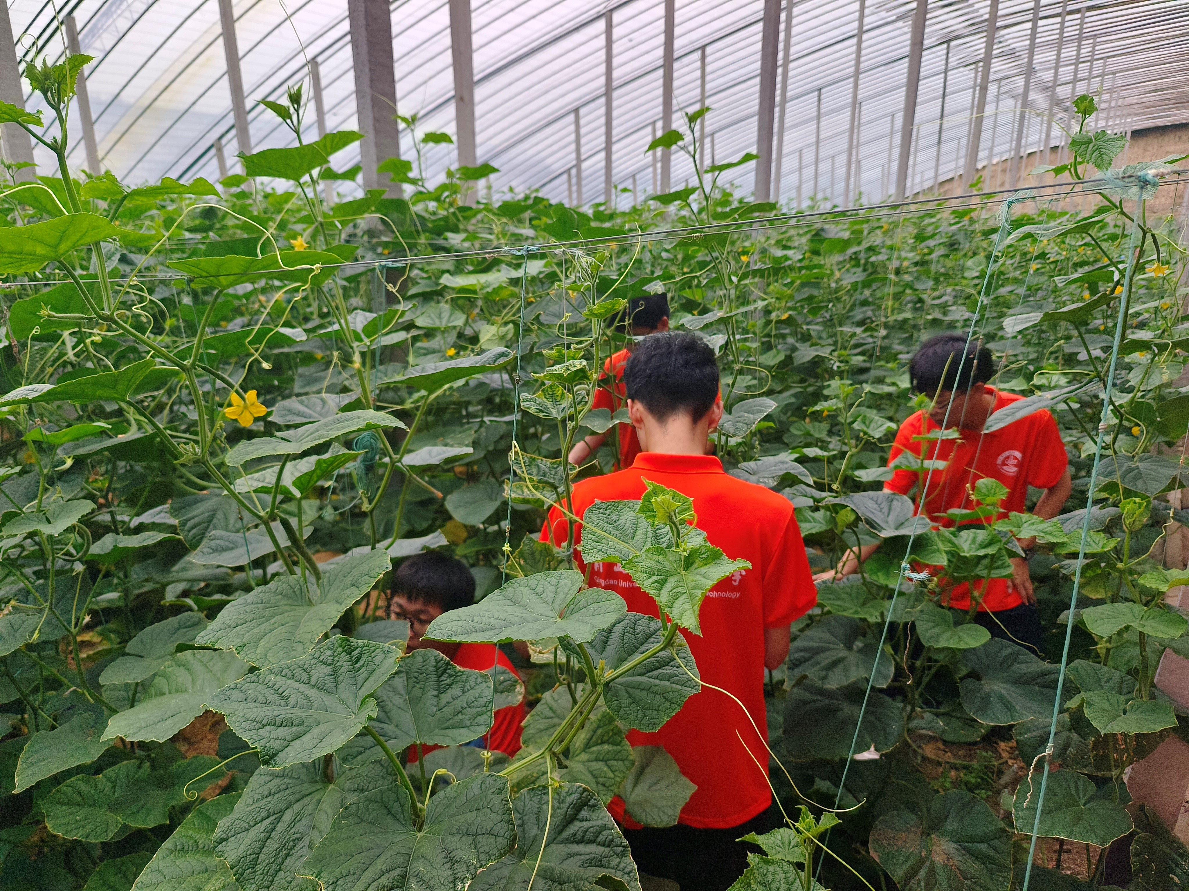随后,队员们不忘此行的目的,一行七人在村民的指导下积极参与劳动,帮助种植户采摘蔬菜,一步步深入了解现代农业操作过程,体会农民的辛苦劳作与蔬菜的来之不易,自化学子劳动的热情与耐心得到了村民的认可与赞扬。