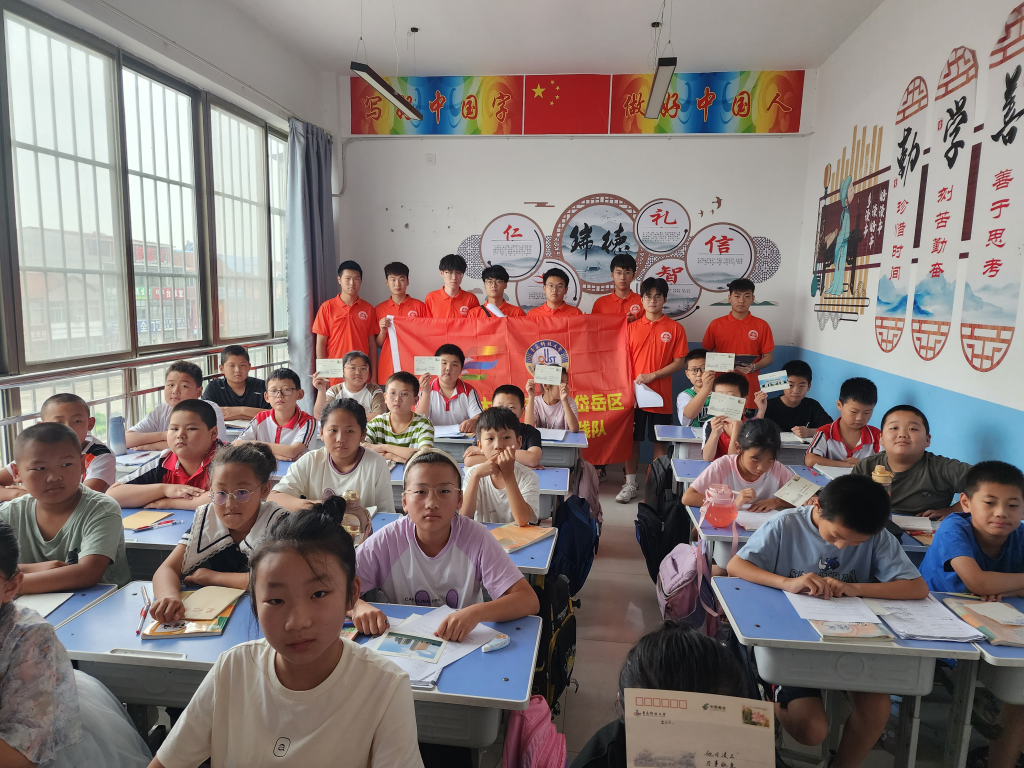 随后,教育关爱团成员前往山口镇第二中学和山口镇新庄小学面向青少年群体开展理论普及宣讲活动。活动过程中,团队成员与学生们进行深入交流和互动,为学生们发放万象城allwincity官网明信片,鼓励他们积极乐观地面对生活,在逆境中成长前行,认真学习,积极锻炼,全面发展,长大后做一个对国家、对社会、对家庭有用的人。
