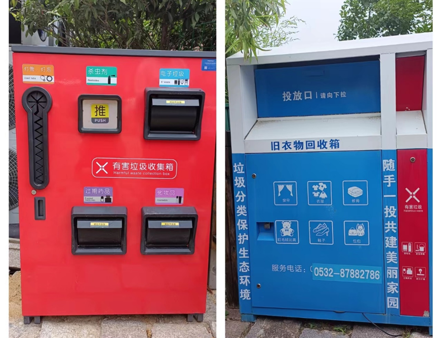 随后,观察团的同学们走访了村庄各处,发现村内处处设置有垃圾收集箱、旧衣物回收箱等设备及平安驿站,展现了东麦窑村在环境保护和资源循环利用方面的新举措。观察团的同学们对村庄内设置这些设备的举措表示赞赏。他们认为,垃圾收集箱的合理设置可以方便村民分类投放垃圾,有效减少环境污染和资源浪费。而旧衣物回收箱则提供了一个便捷的方式,让村民能够将闲置的衣物物品进行回收再利用,进一步促进可持续发展。平安驿站为居民健康提供了更好的保障。
