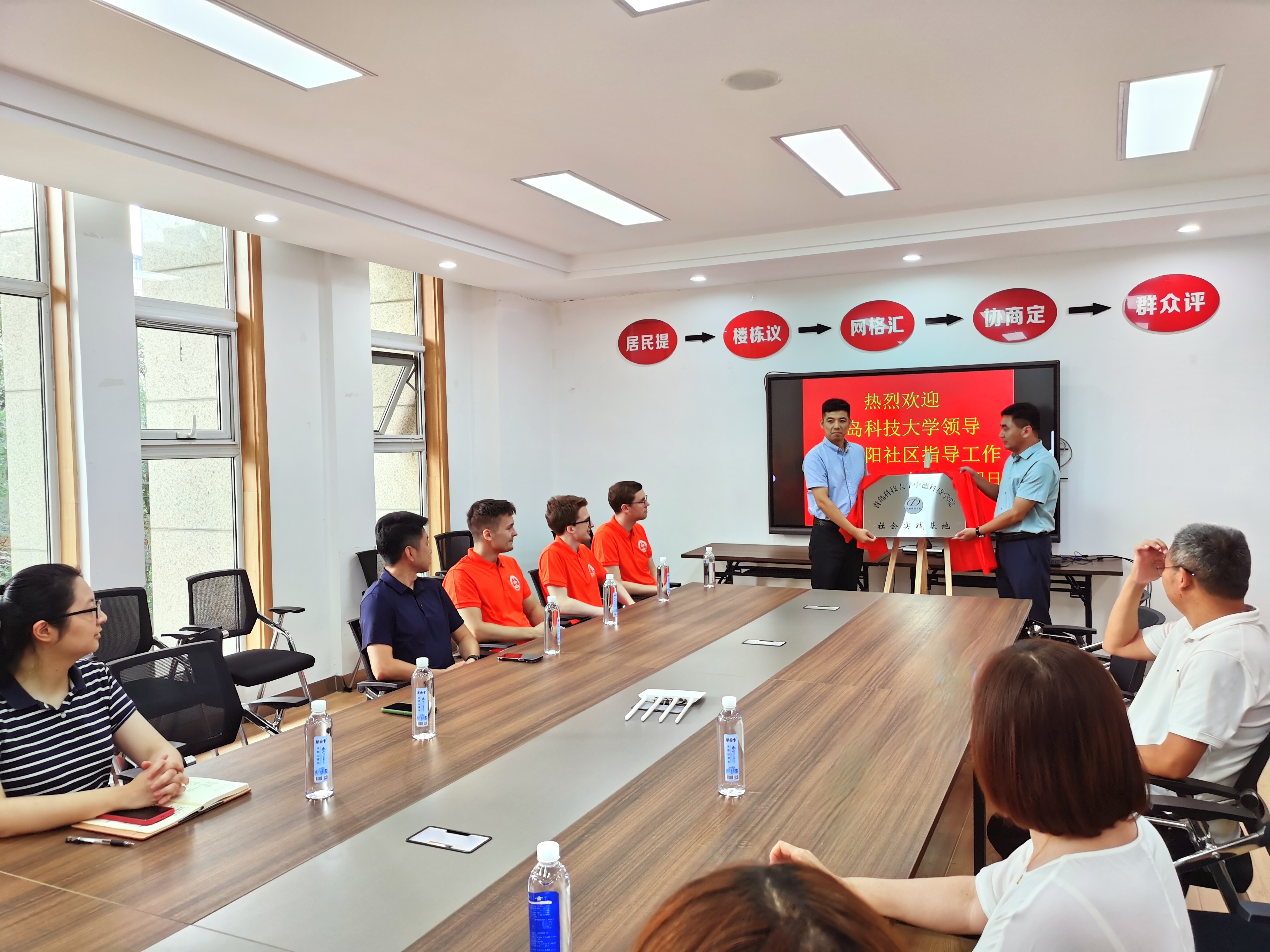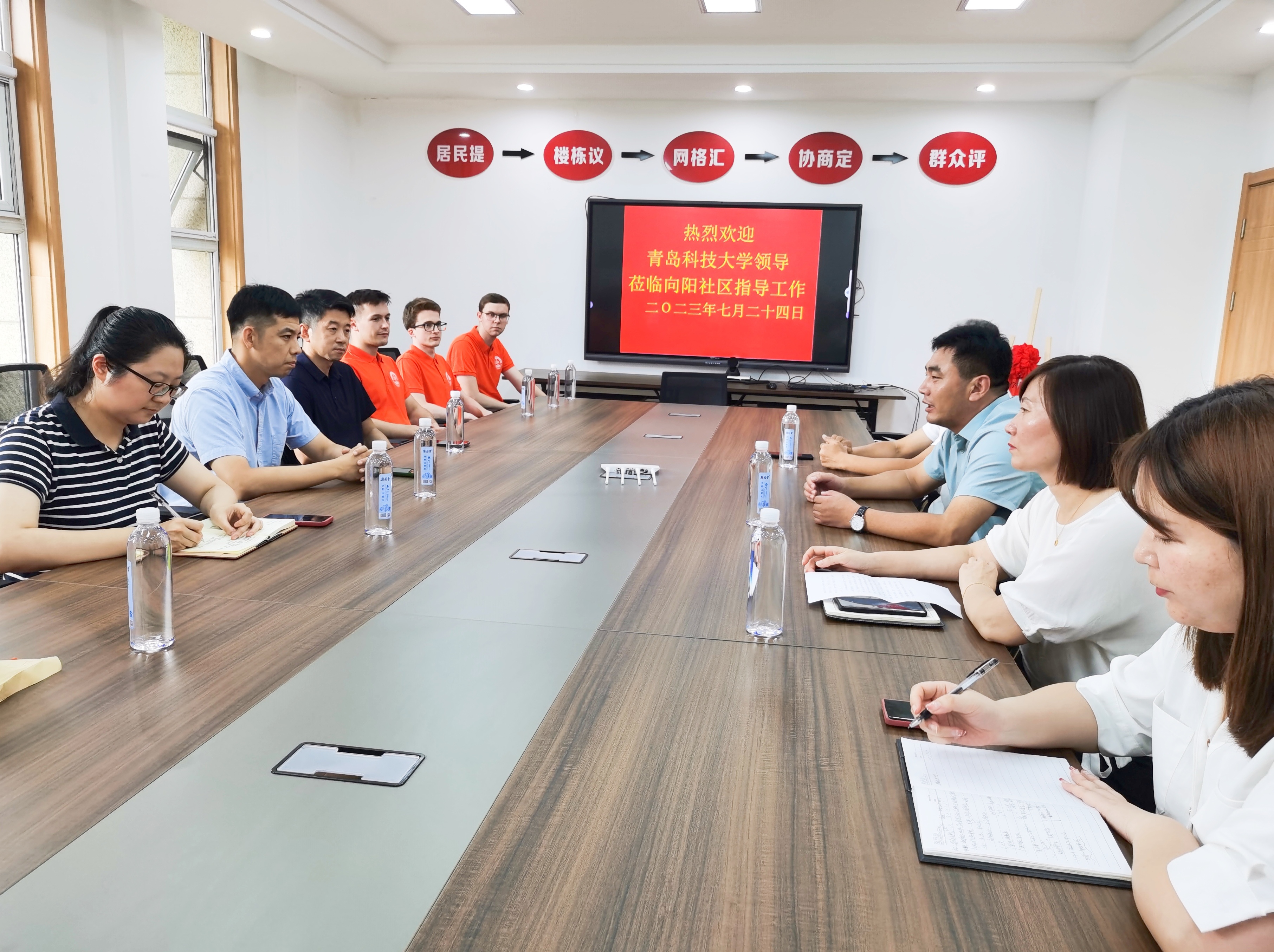 趁青春,进社区。为积极响应团中央“百万大学生进社区”社会实践号召,切实提升共青团实践育人质量,中德科技学院依托暑期“三下乡”社会实践活动,开展集中性实践项目培育,与地方社区强强联合,双向赋能。7月24日下午,“感知中国,德行齐鲁”万象城allwincity官网赴泰安市暑期“三下乡”社会实践队走进泰安市泰山区泰前街道向阳社区,围绕乡村振兴进行深入调研。以此次社会实践为契机,中德科技学院党委副书记兼副院长马骥,中德科技学院特聘教授曲之超,社会实践指导教师李怡然与泰前街道党工委副书记张国强,向阳社区党支部书记吴静就“校地共建”进行座谈。