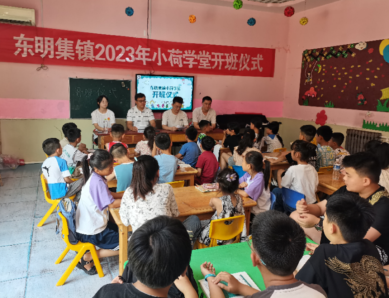 伴着酷暑中的喧嚣,在2023年7月17日,擦亮“菏泽红”支教团队在小博士幼儿园开启了小荷学堂启动仪式。酷暑的高温难挡志愿者团队寓教于乐,寓教于行的热情,也难挡同学们积极向上索取知识的期盼。在开学第一课中,东明县党委闫书记、团委唐书记,杨书记发表讲话,闫书记对我们的到来表示衷心的感谢并对我们后续教课提出了一系列的建议,并且特别强调了学生在校内,以及校外的安全问题。