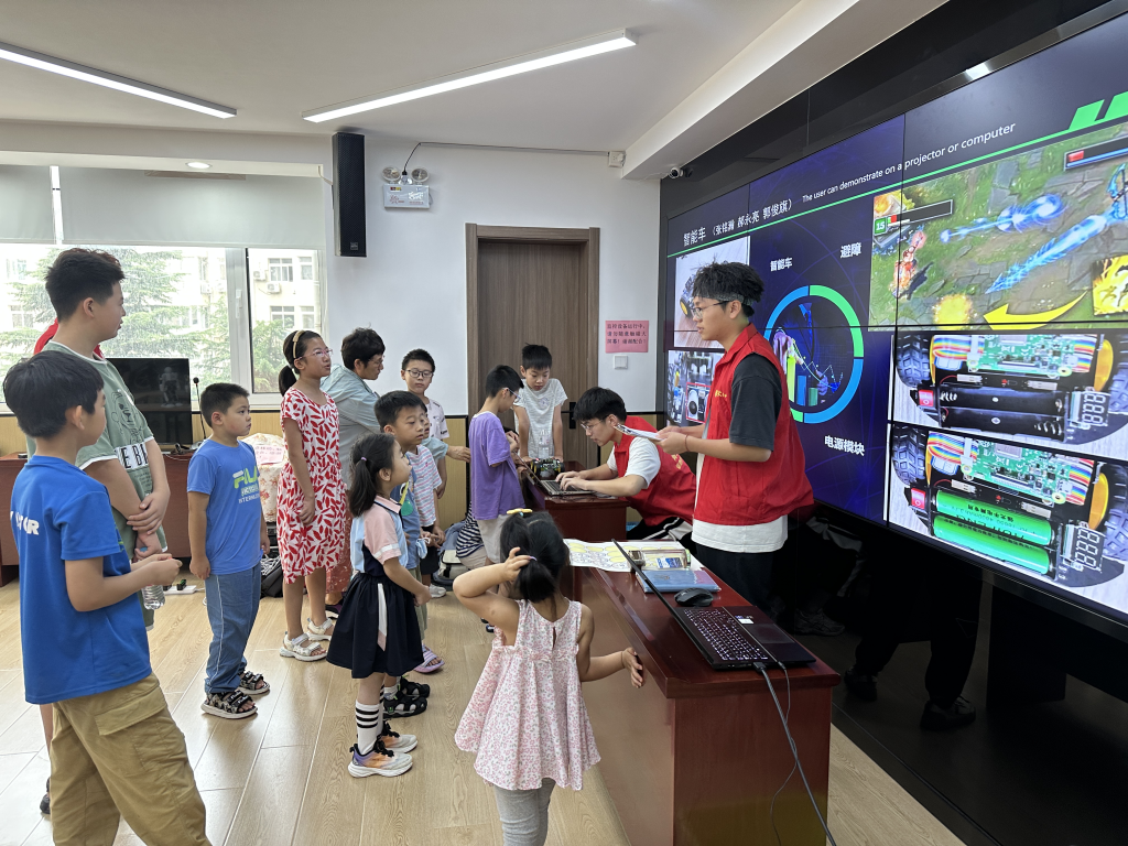 讲解环节过后,志愿者还设计了智能车竞速环节,让每名小朋友都能进行“沉浸式”体验,孩子们驱动着小车你追我赶,在欢声笑语中收获知识。