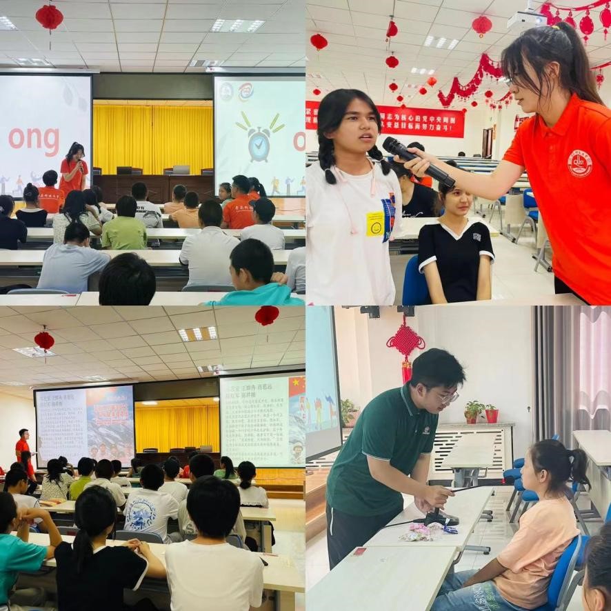 7月25日,实践团开设了以“同讲普通话,共抒爱国情”为主题的推普特色小课堂活动,从最基础的发音开始,帮助同学们解读含义,纠正发音,营造讲普通话的浓厚氛围,并通过在课堂中穿插“模拟对话30句”趣味游戏,寓教于乐,充分调动现场同学们的积极性,引导他们不仅要大胆讲出普通话,还要自信讲、快乐讲,真正将普通话应用到日常生活当中。