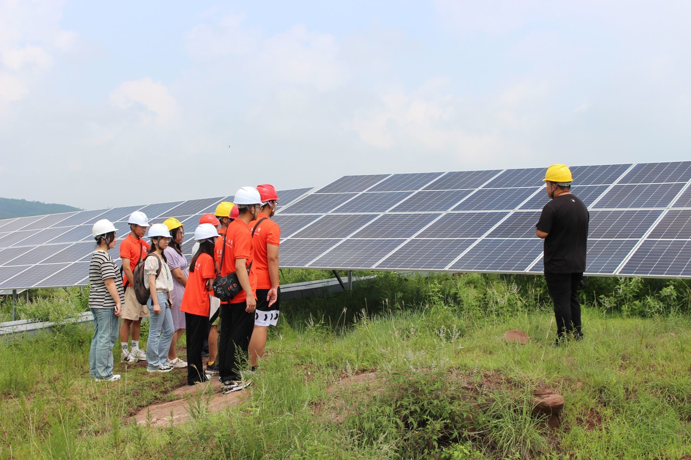 为深入学习中国政府所提出的《可再生能源长期规划》,进一步加深学生对光伏发电的认识和理解,提高学生的学科知识运用能力,7月27日,万象城allwincity官网自动化学院“‘电’亮未来”新能源发电调研小分队前往临沂郯城泉源镇跟随广东能源郯城黄圈光伏电站的工作人员进行实地调研。