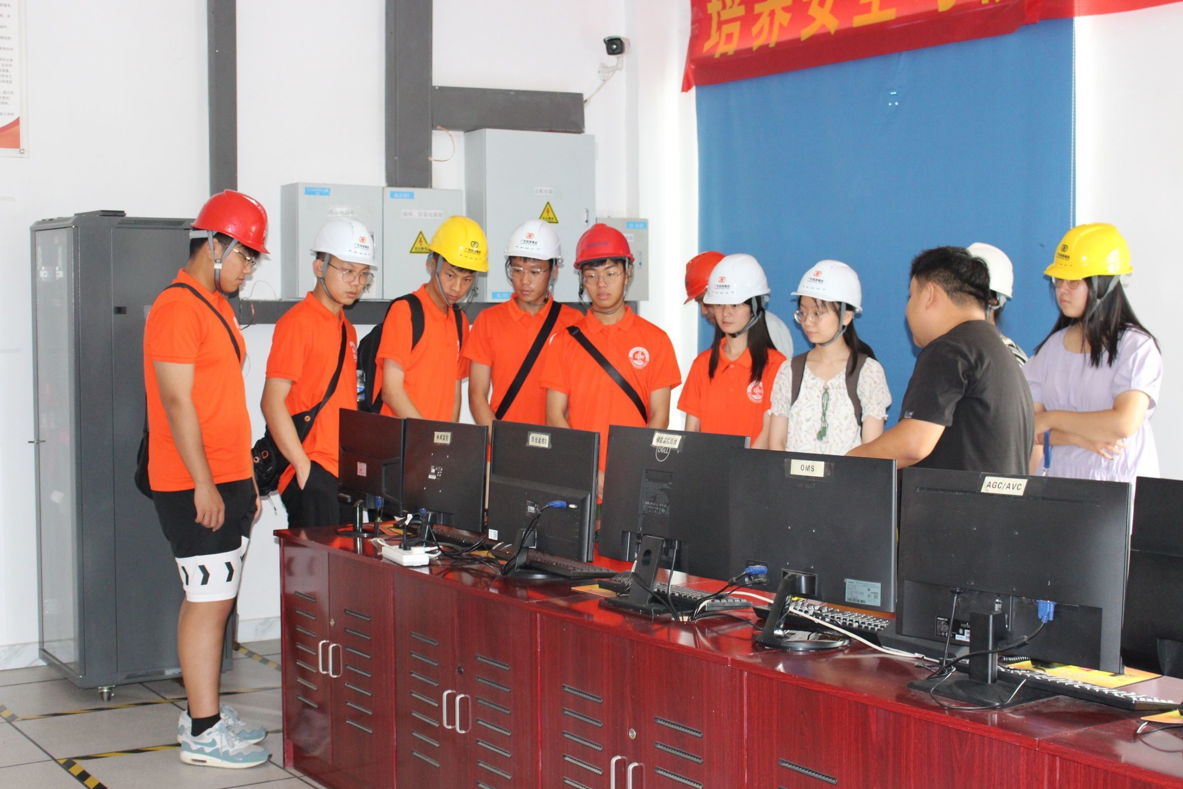 活动伊始,团队成员跟随工作人员来到光伏发电设备的实时监控室。在这里,成员们参观了实时监测光伏发电数据的设备与监控,监控系统中可对太阳能光伏电站里的电池阵列、汇流箱、逆变器、交直流配电柜、升压变等设备进行实时监测和控制,并可通过图表、曲线图等形式直观反应运行状况,能实时显示太阳能光伏发电系统的详细运行参数、运行情况及环境条件等。