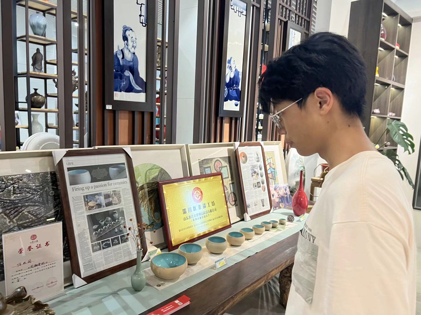 调研团于8月3号早来到淄博市博物馆实地走访,在我们询问到一位在当地进行志愿者引导服务的工作人员时,问及对于城市宣传和特色产业方面,工作人员露出自豪的笑容,骄傲地说“我们淄博旅游我敢说肯定是顶呱呱的,瞧这大街上,每一处都是我们的特色!”