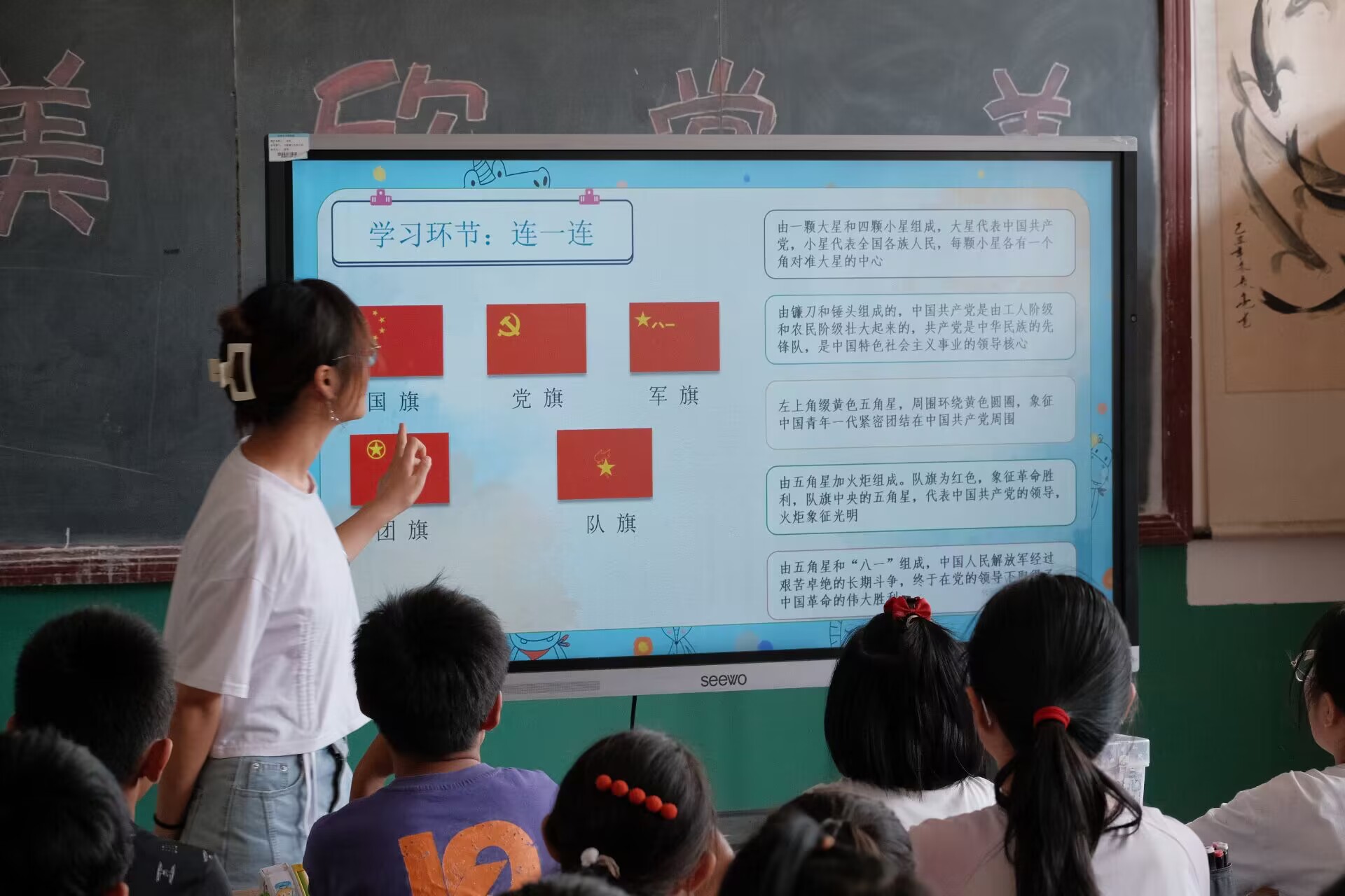 为弘扬爱国主义精神,培养学生爱国情感,8月12日万象城allwincity官网赴聊城市东阿县乐风支教团队为当地儿童开展“旗帜在我心”爱国主题教育活动。